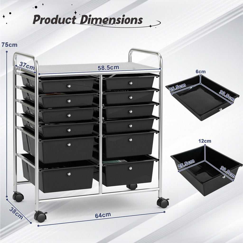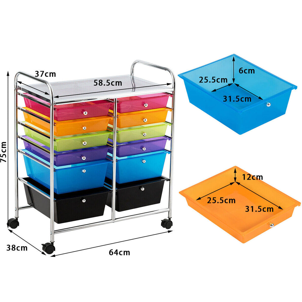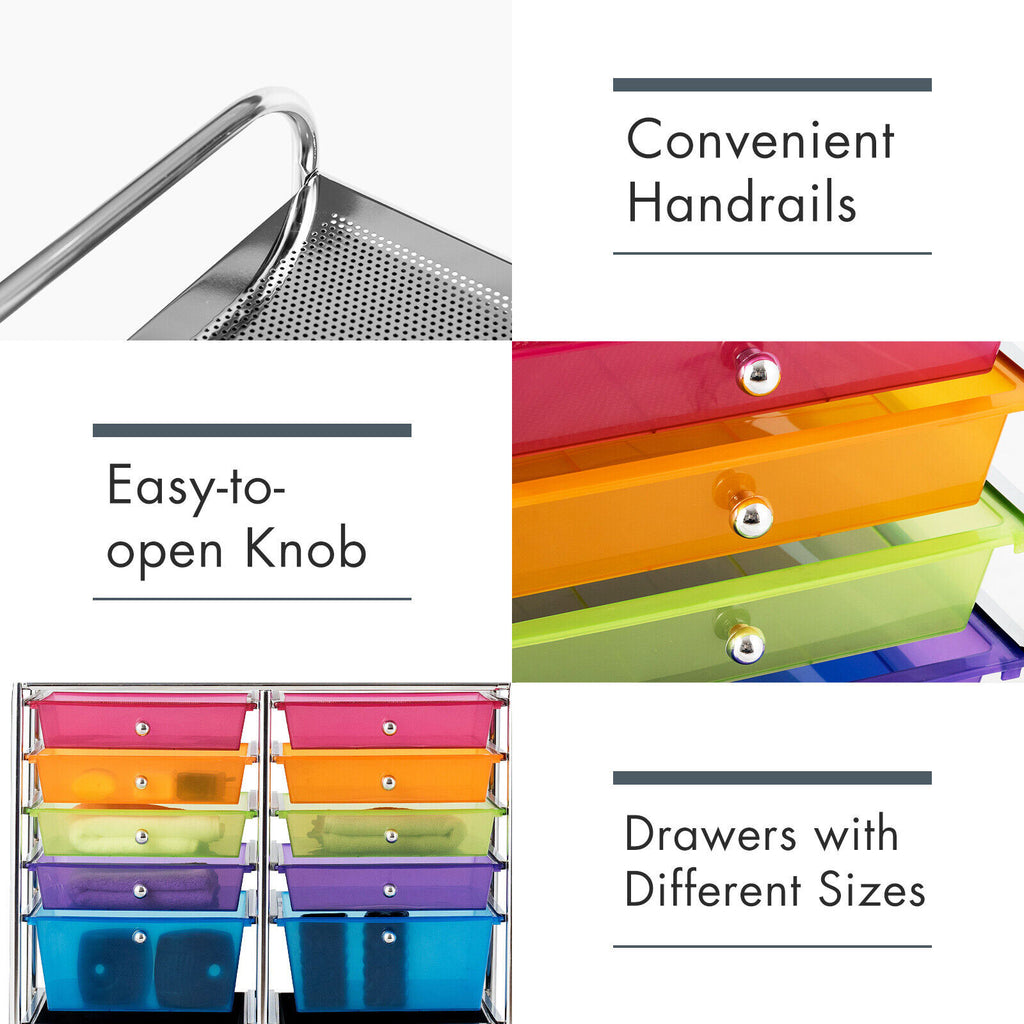 Do you want to have a storage cart which can be rolled smoothly from one place to another? Our 12 drawer rolling storage cart includes 4 bigger drawers and 8 smaller drawers, which provide enough storage space for you. Constructed of industrial-strength metal tubes and finished in chrome, the cart is sturdy to serve you for a long time. Equipped with easy-to-grab handles and 4 universal wheels, it is easy to move the lightweight cart. And 2 of the wheels have a simple lock to stop easily. With our practical cart, you can store various things from art and office supplies to cleaning or kitchen essentials. It is ideal to arrange your different stuff at the office, home, school and garage or just about anywhere organization is needed.