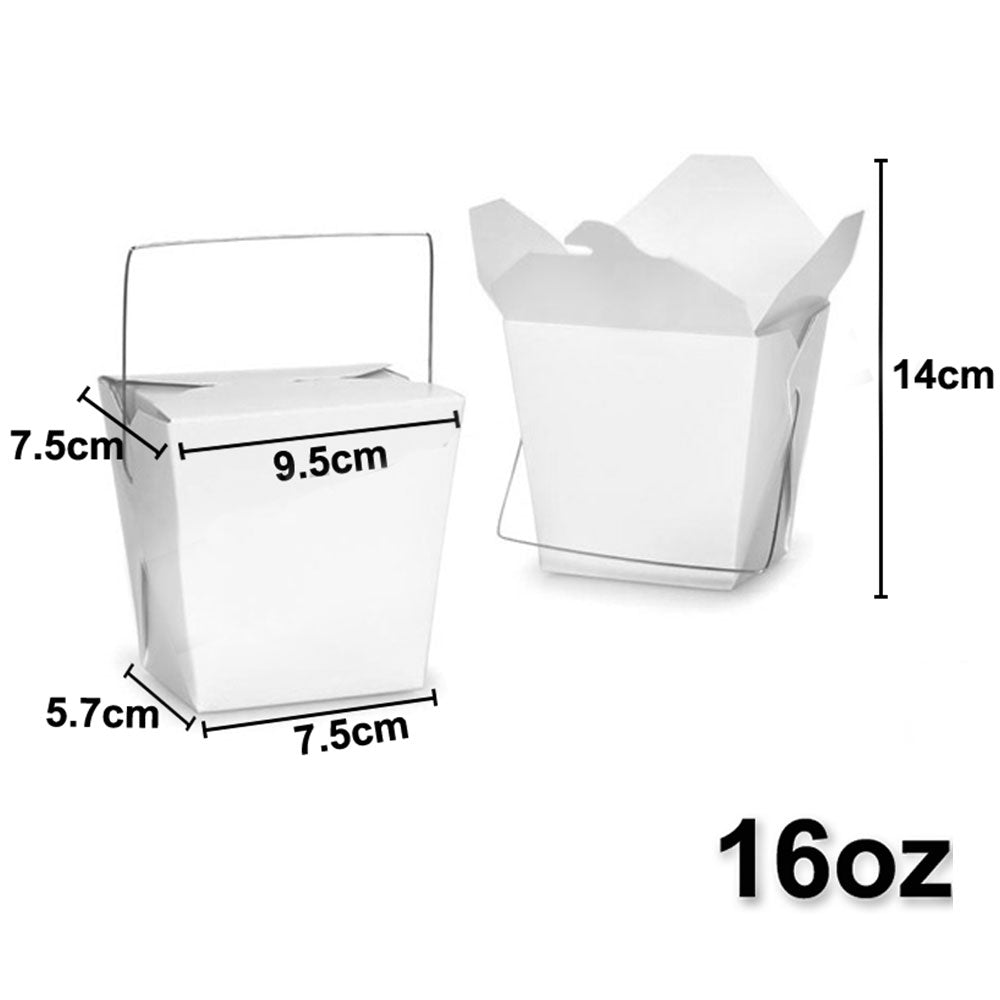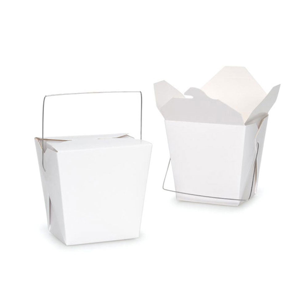 Finished in white cardboard with metal handle. Perfect for party favours, finger food at cocktail parties. Or serving Asian food. These White noodle boxes with metal handles are in a handy pack of 500 and have a multitude of uses. !