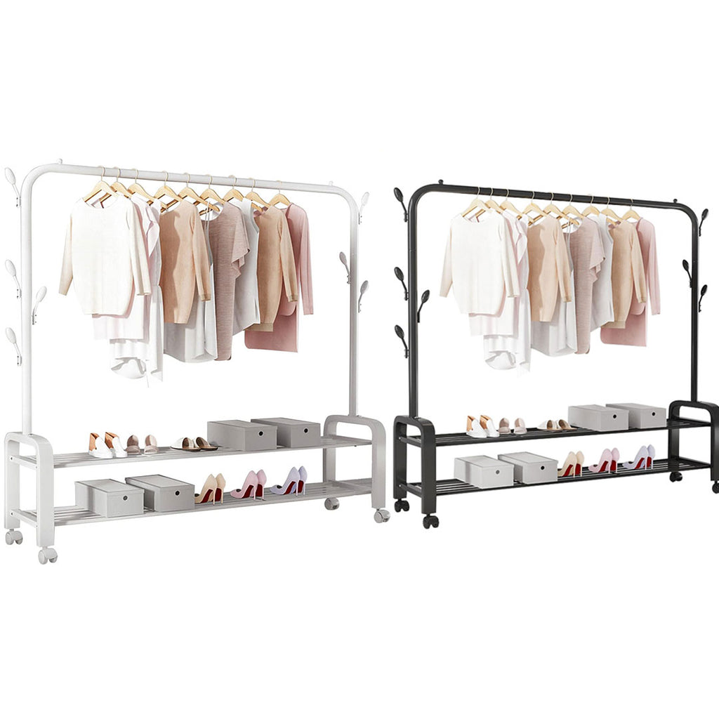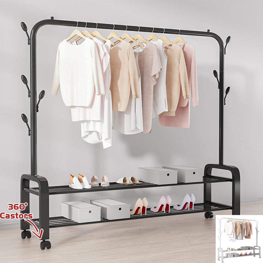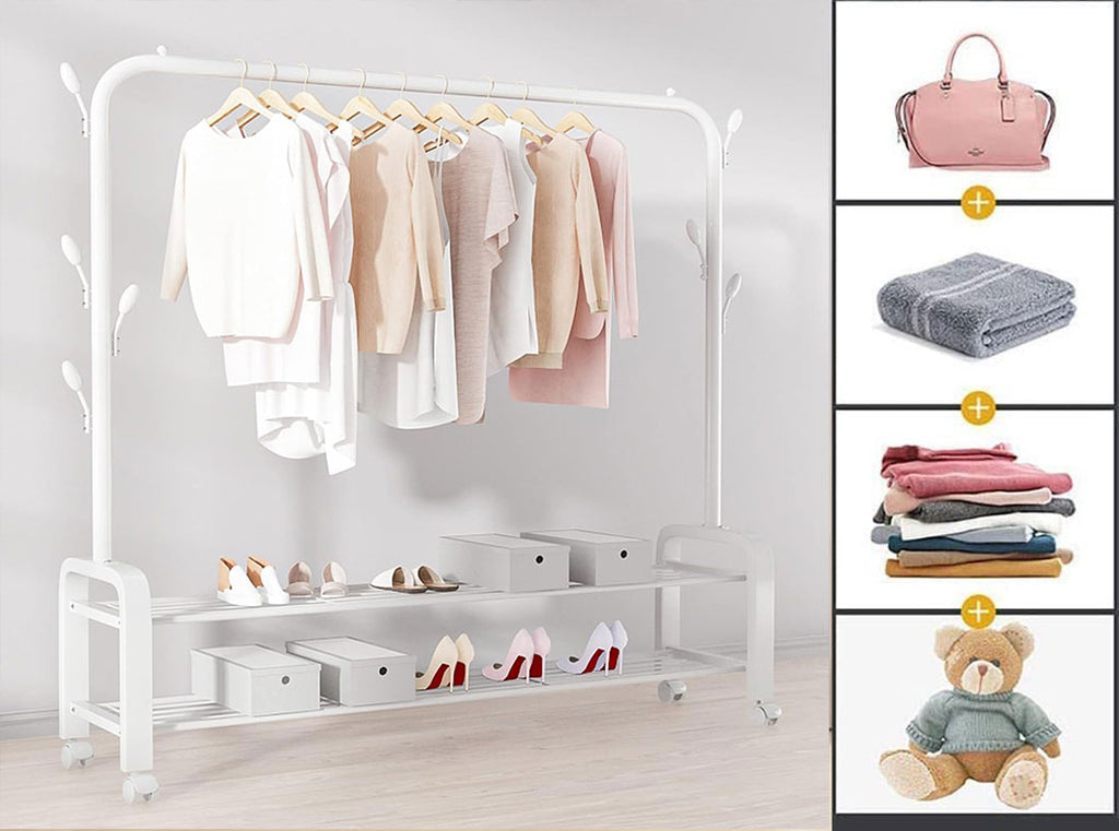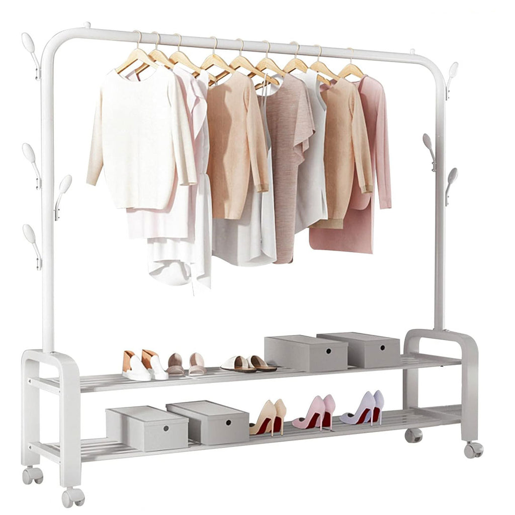 This Portable Multi-Function Clothes Rack will come in handy for storing or drying clothes. Keep your clothes organized with this portable clothes rack - the rail has removable castor wheels so you can move it around easily and quickly, ideal for taking with you on the go! Sturdy and durable, this multifunctional clothes rack will hold a large load of clothes with its strong stainless steel frame and two cross bars at the bottom to prevent it from swaying. The mobile design makes this rail the perfect storage solution for your clothes.