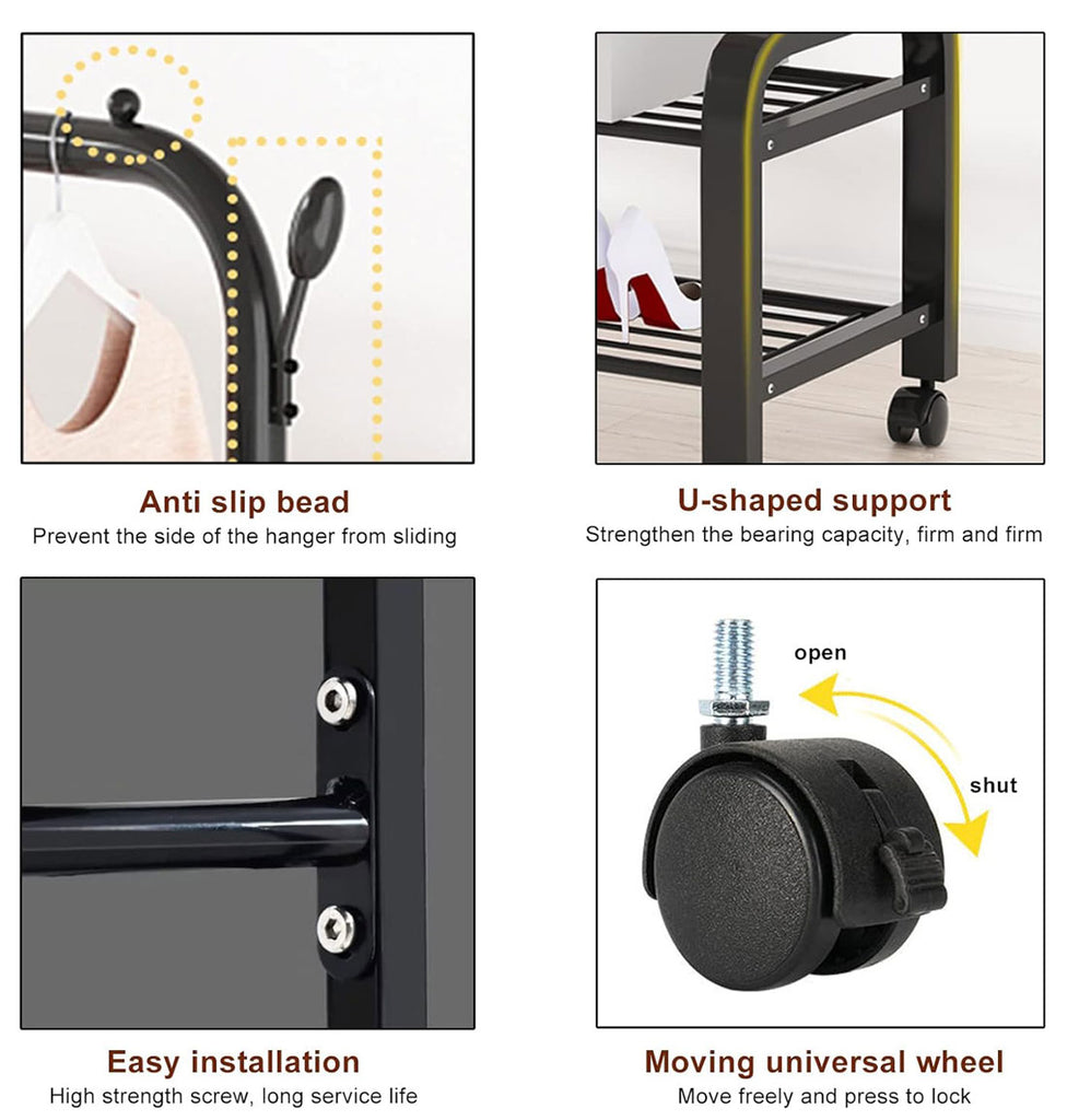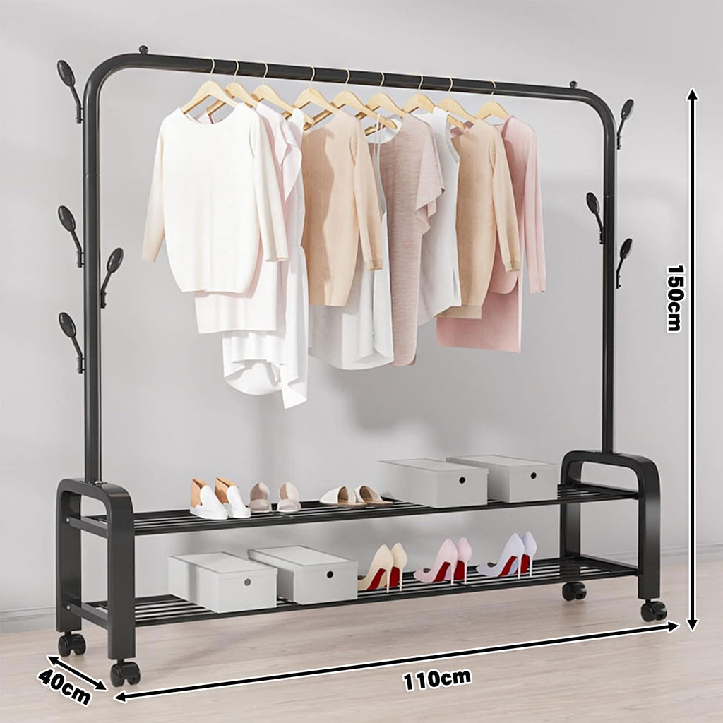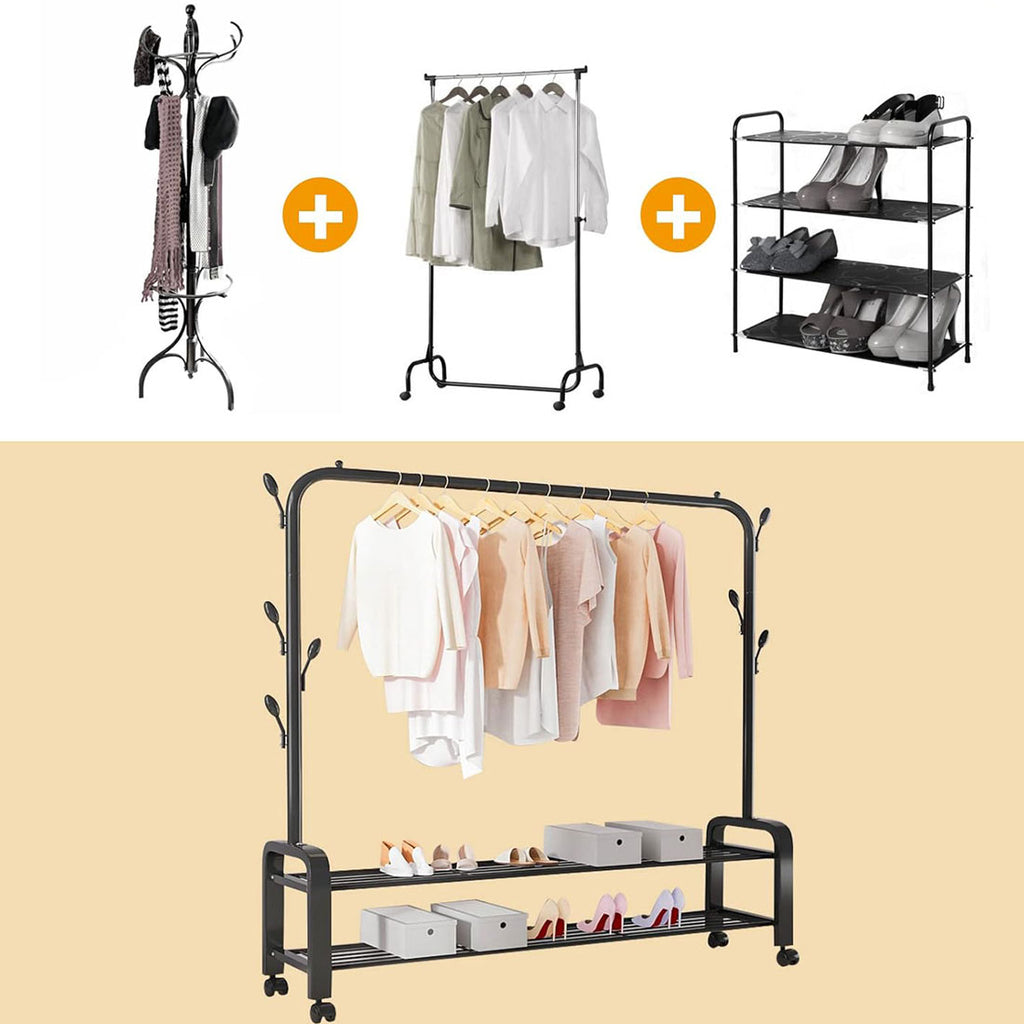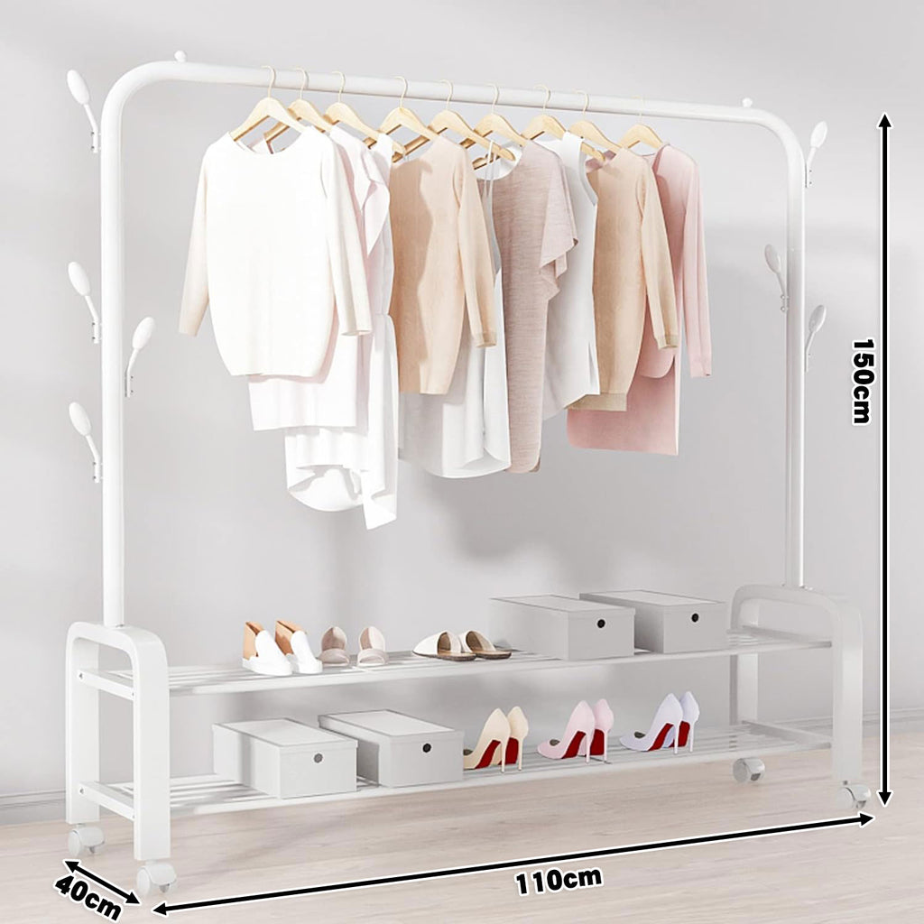 This Portable Multi-Function Clothes Rack will come in handy for storing or drying clothes. Keep your clothes organized with this portable clothes rack - the rail has removable castor wheels so you can move it around easily and quickly, ideal for taking with you on the go! Sturdy and durable, this multifunctional clothes rack will hold a large load of clothes with its strong stainless steel frame and two cross bars at the bottom to prevent it from swaying. The mobile design makes this rail the perfect storage solution for your clothes.