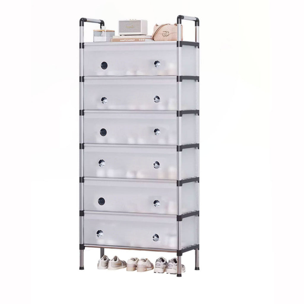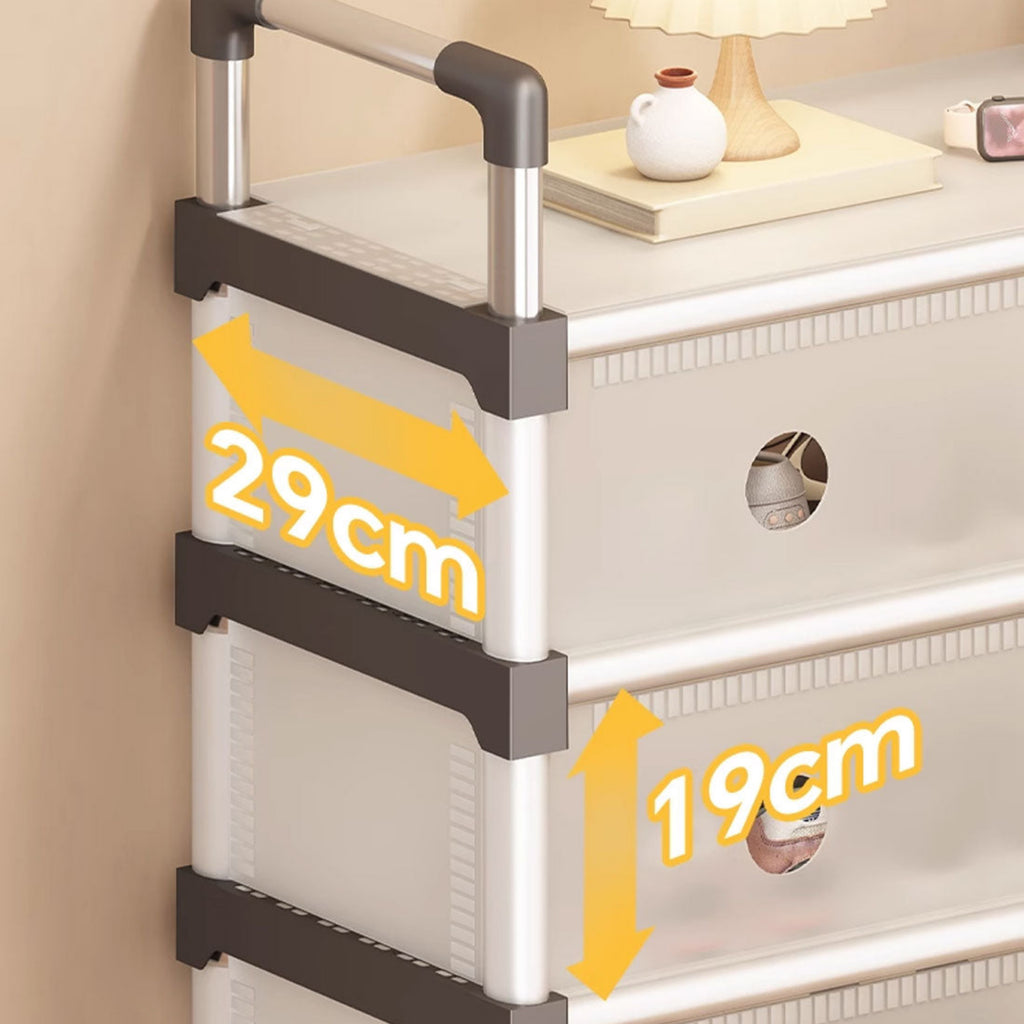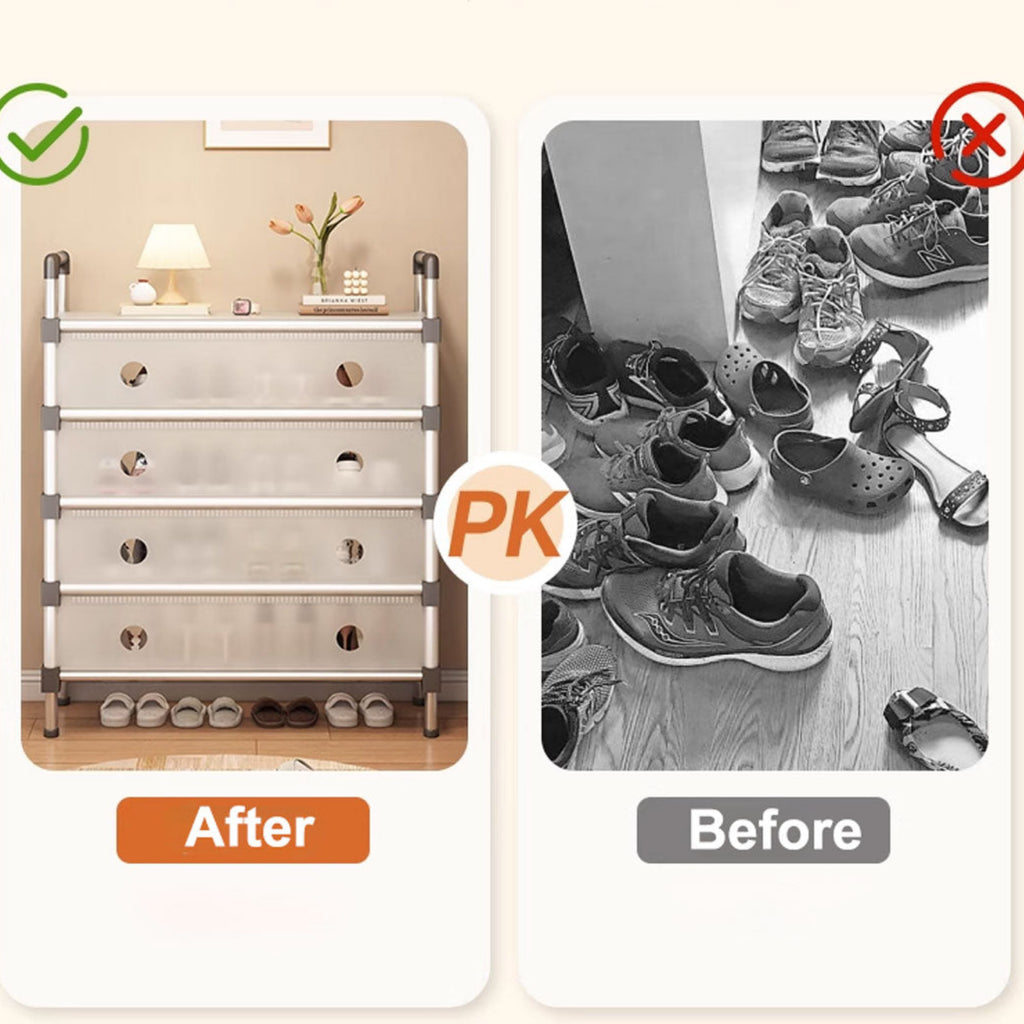 A perfect storage solution for the person who has too many shoes. Uncluttered your life and free up that wasted space into a neat tidy tower of shoes and be the envy of everyone! Picking out a shoe to fit your outfit is so much easier and convenient - with all your shoes conveniently located in one place, you'll never have to go looking for missing shoes ever again! The non-slip shelves are fully adjustable to suit various shoe sizes, large or small. Made out of sturdy steel tubes and resin siding connectors, this lightweight shoe rack and be built into any number of levels as needed.