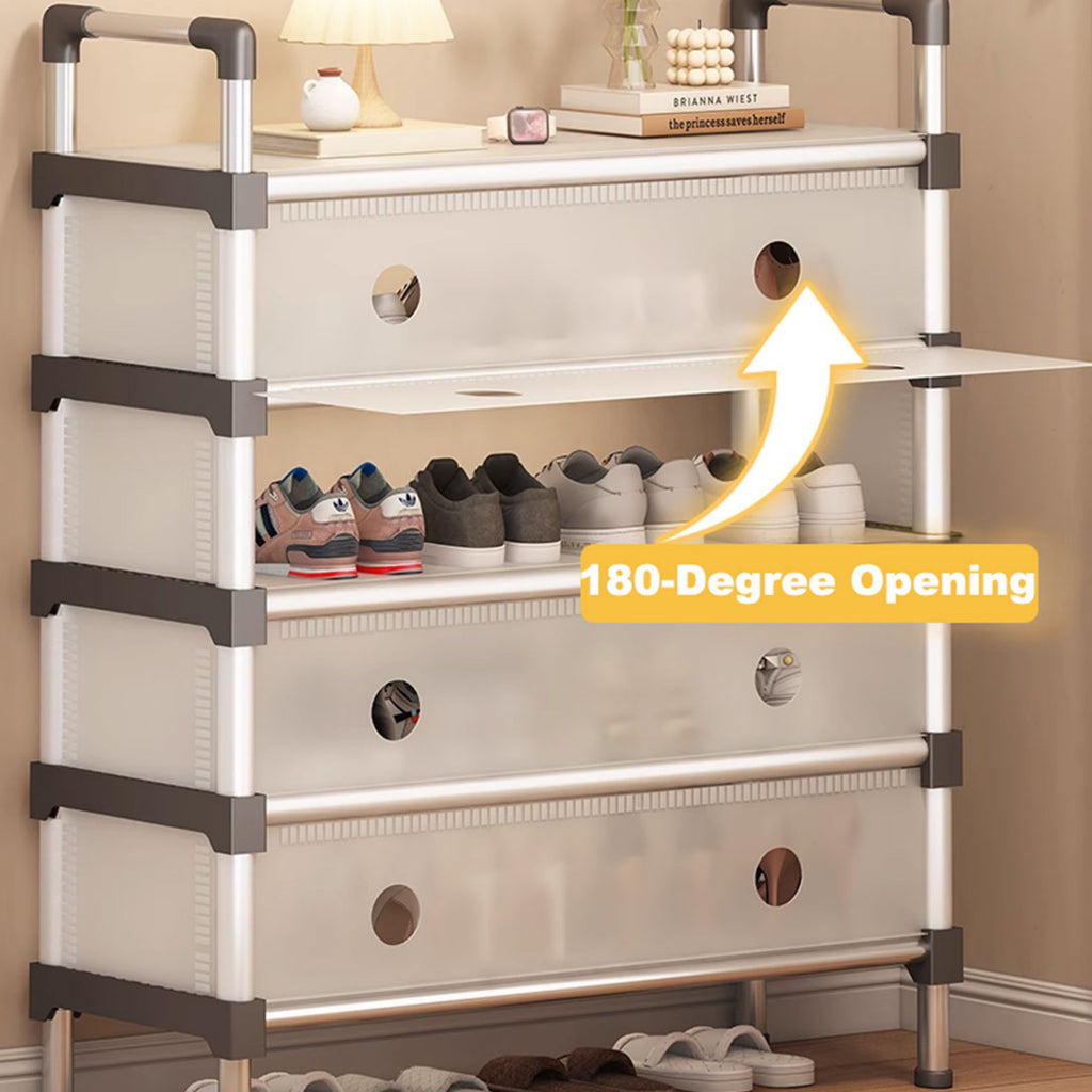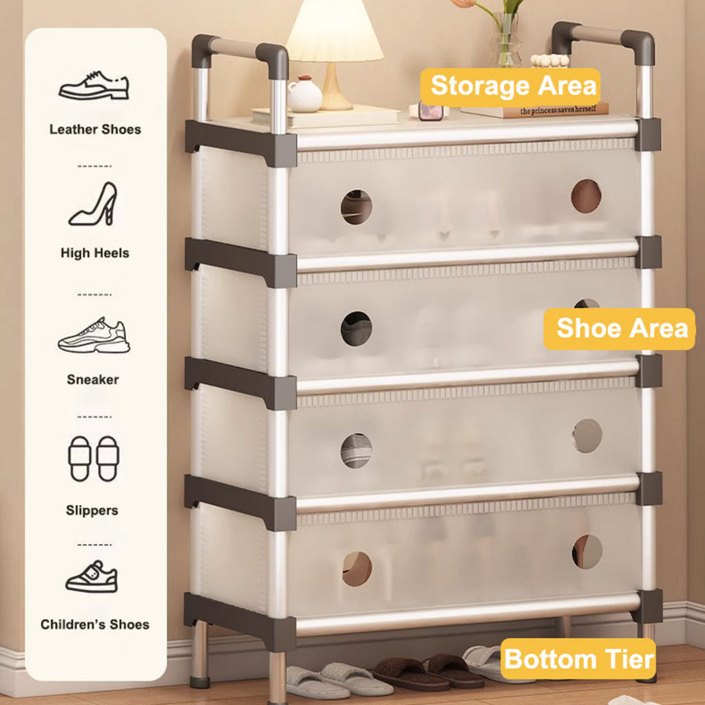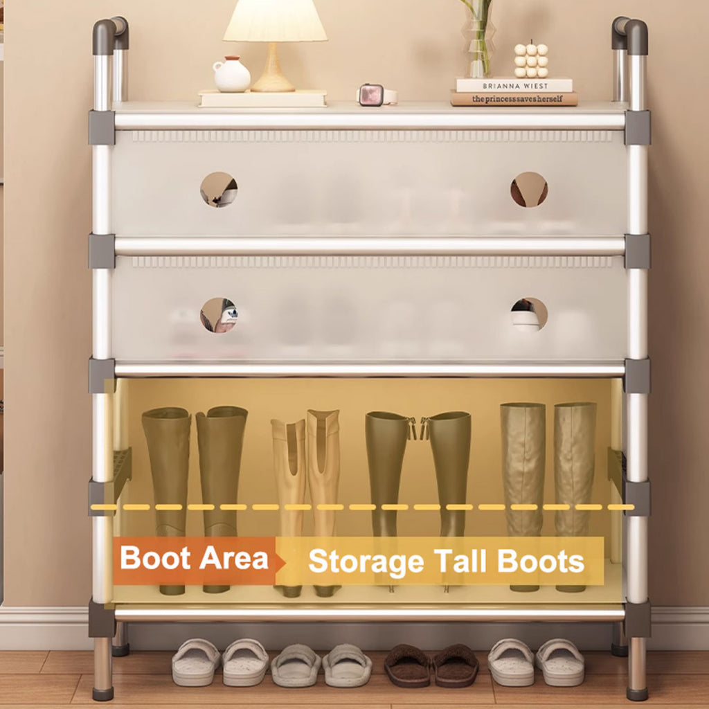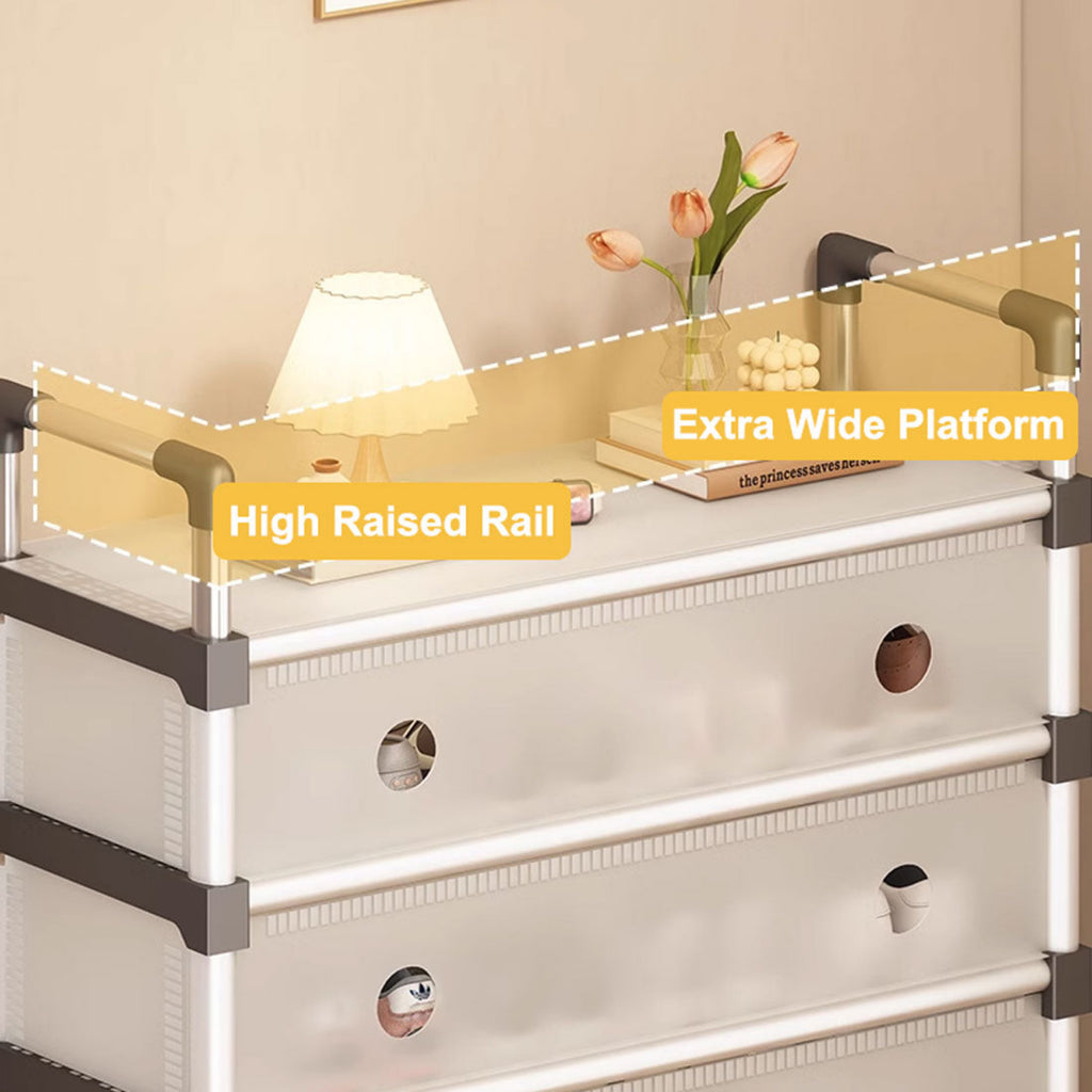 A perfect storage solution for the person who has too many shoes. Uncluttered your life and free up that wasted space into a neat tidy tower of shoes and be the envy of everyone! Picking out a shoe to fit your outfit is so much easier and convenient - with all your shoes conveniently located in one place, you'll never have to go looking for missing shoes ever again! The non-slip shelves are fully adjustable to suit various shoe sizes, large or small. Made out of sturdy steel tubes and resin siding connectors, this lightweight shoe rack and be built into any number of levels as needed.