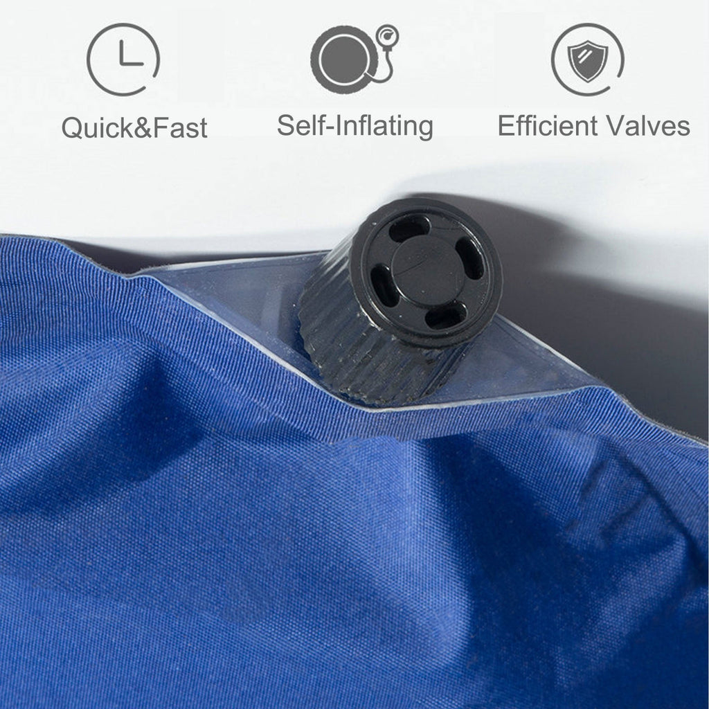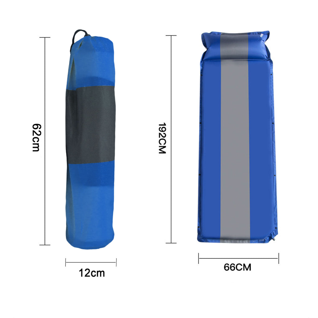 Double Self Inflating Mattress Sleeping Mat Air Bed Camping Camp Hiking Joinable Pillow - blue
