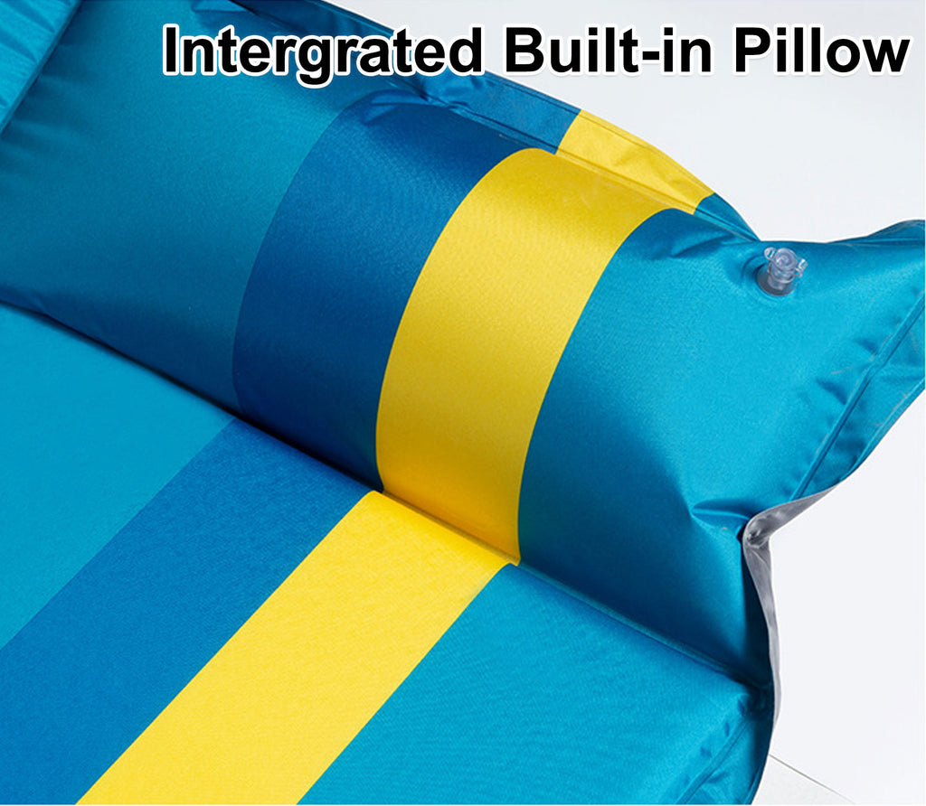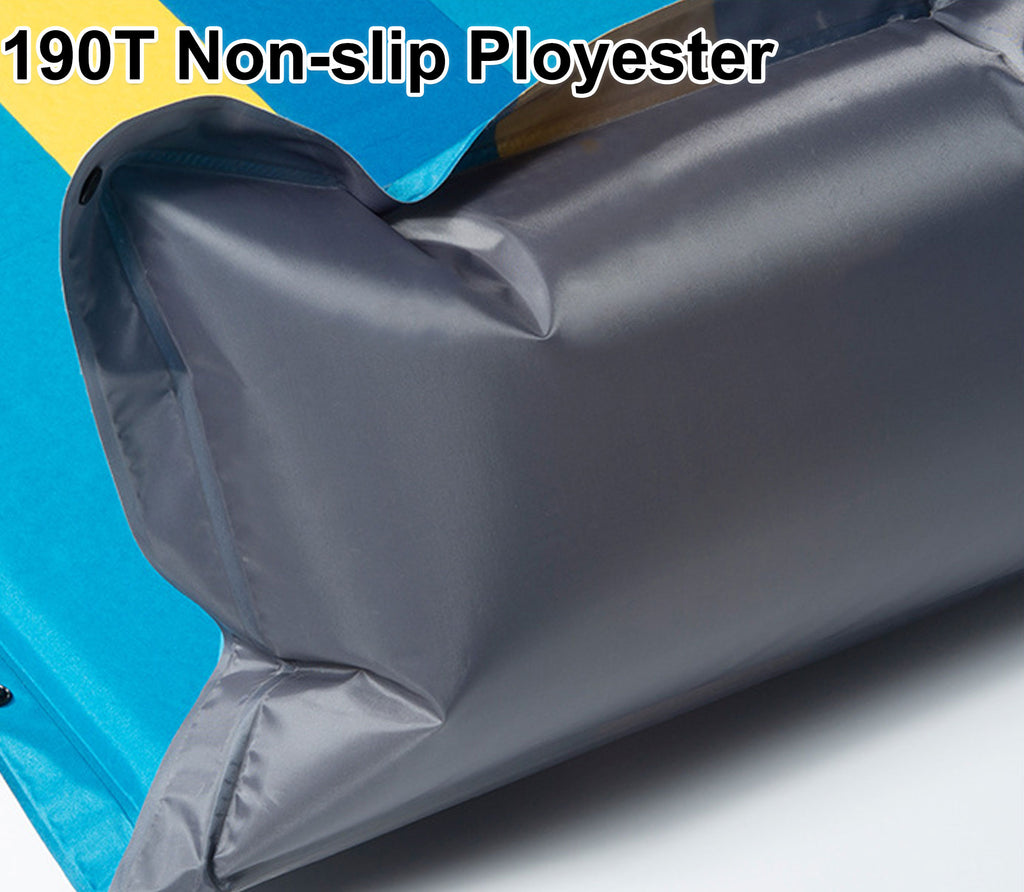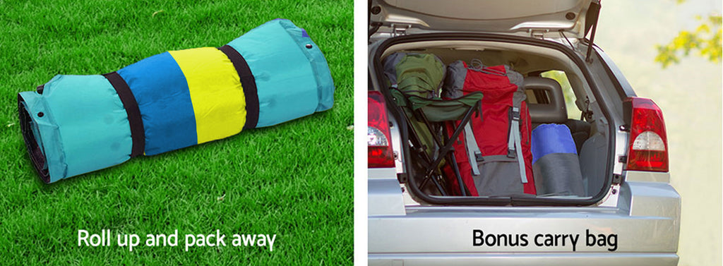 Double Self Inflating Mattress Sleeping Mat Air Bed Camping Camp Hiking Joinable Pillow - light blue