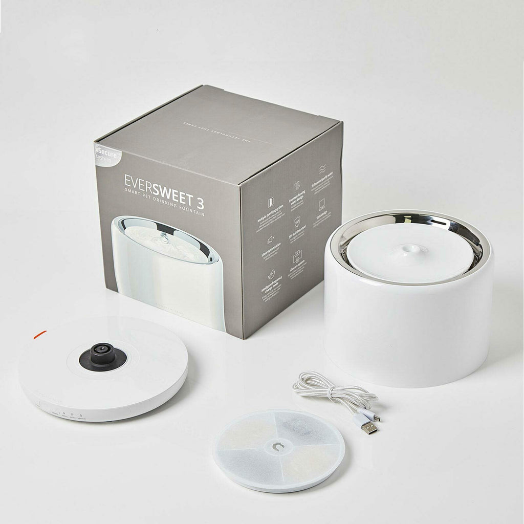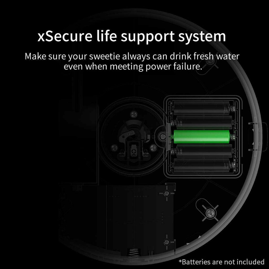 xSecure - PETKIT EVERSWEET 3 water fountain for cats unique xSecure system provides a back-up battery solution (batteries not included) which allows a 7 days independent power supply in case of power outage. No more worries when you're away from a small vacation.