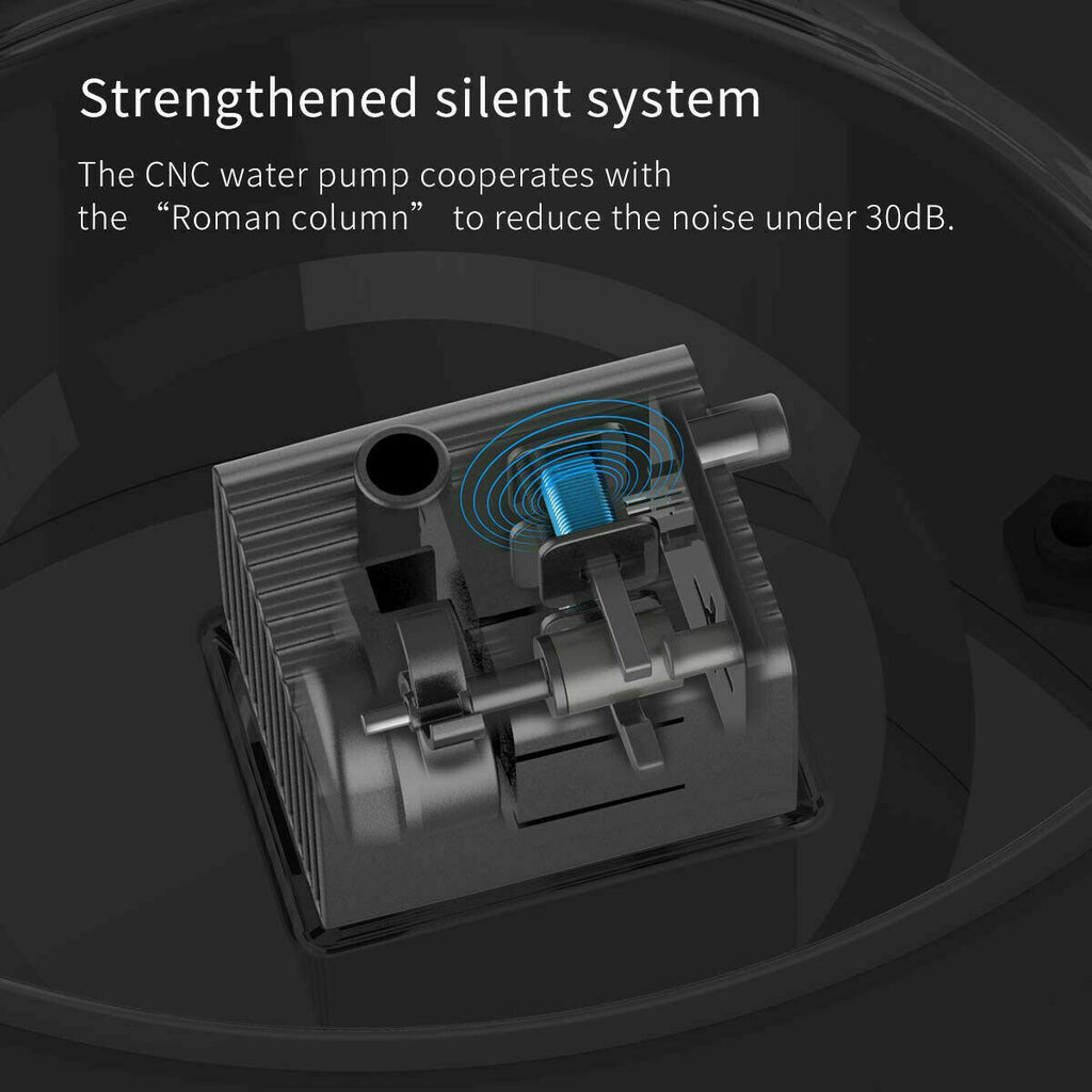 xDesign - Progressive and top notch exterior design makes it super distinguishable. Embedded LED lights can easily remind you the fountain working status. And the pump will shut off automatically, when the water level is too low in the fountain. Smart mode is solely designed for lower power consumption.