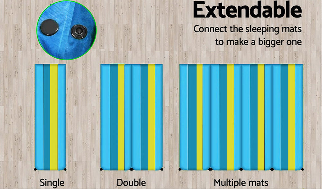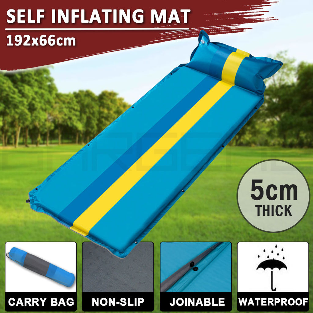 Self Inflating Mattress Sleeping Mat Air Bed Camping Camp Hiking Joinable Pillow - light blue