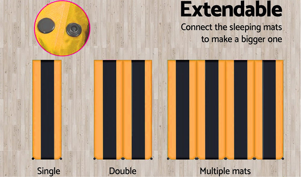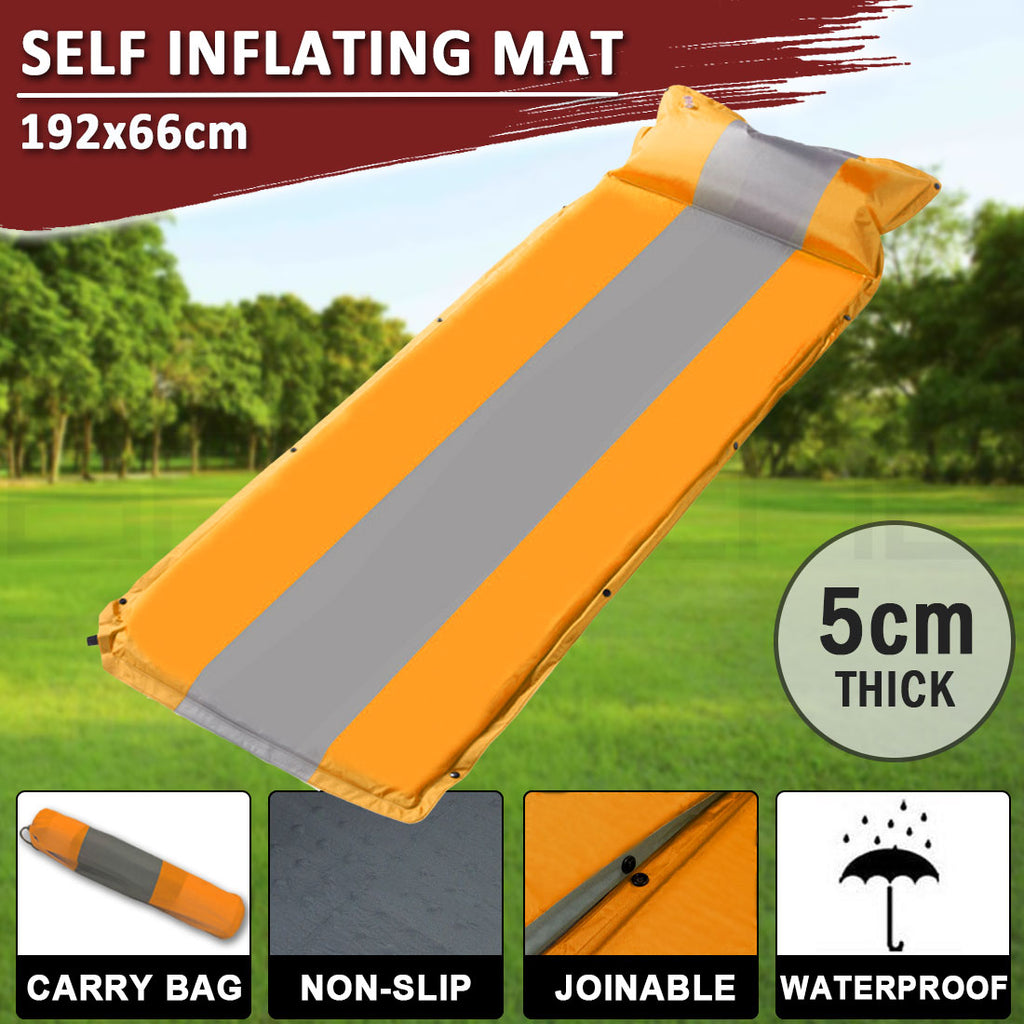 Self Inflating Mattress Sleeping Mat Air Bed Camping Camp Hiking Joinable Pillow - orange