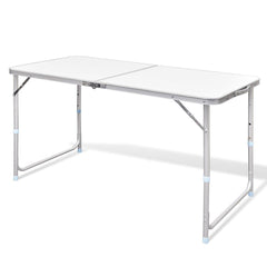 Aluminium Folding Portable Garden Camping Picnic BBQ Table Height Adjustable 120 x 60 cm - white
