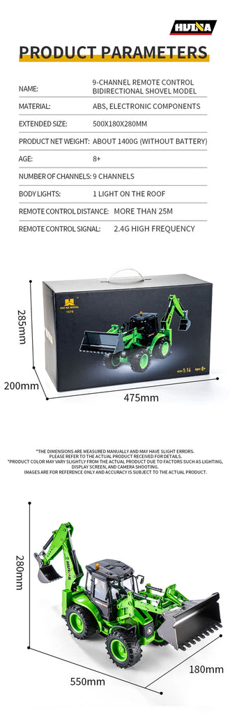 The Huina 1553 dump truck is a dynamic and realistic marvel! Its tipping bucket can smoothly ascend to a 45-degree angle and then gracefully lower, perfectly mimicking the movements of an actual truck. Packed with an impressive 11 functions, this truck offers a thrilling driving experience. It effortlessly moves forward, backward, turns left, and right, just like the real deal!