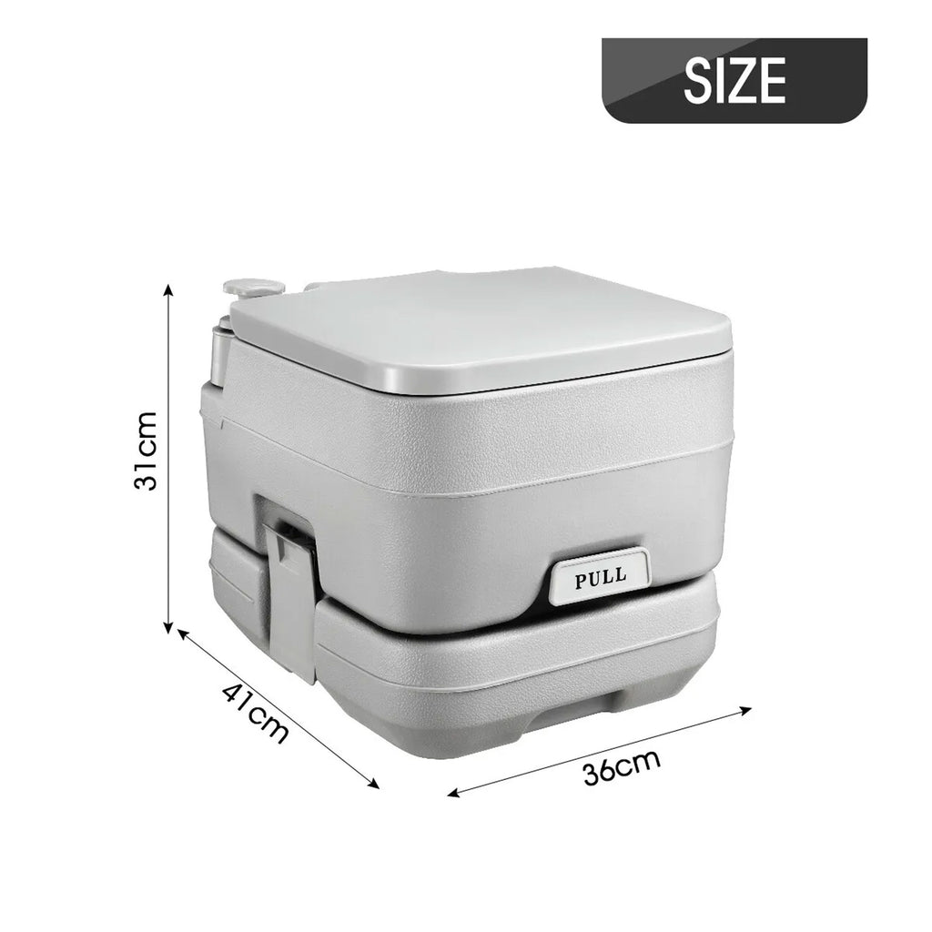 Make your journey worry-free with this 10L Portable Toilet Camping Travel Mobile Porta Potty. Thanks to the high-density polyethylene structure, the travel potty is lightweight yet sturdy for years of use. Completely self-contained, this travel toilet does not require any external water or power supply. Adopting piston pump flush and double flush designs, the portable toilet for camping is composed of a 12L fresh water tank to provide up to 50 times of thorough flushes and a 10L waste holding tank which is easily detached and emptied. A double-sealed drain valve is included to prevent leakage and odour. Compact and easy to transport, the mobile toilet boasts of impressive versatility and amazing practicality so that it can not only be used for camping, off-road driving, fishing and boating but also used as an emergency toilet for hospitals and aged care spots. The best portable toilet is ideal for all seasons and detachable for easy storage and cleaning.