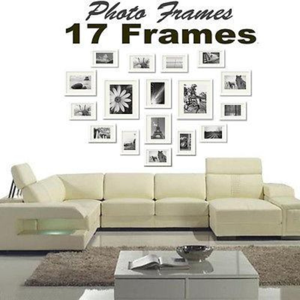 17 pcs Picture Photo Frame Set Wall 115 x 80cm Home Decor Art Colour Gift - white