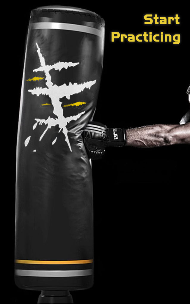 Boxing and other martial arts are booming in popularity as people discover their benefits. No longer just for self-defence, these sports increase agility and cardiovascular fitness, making them perfect for cross-training and general fitness. Now, you can train at home as well as in the gym with this free-standing punching bag. Standing at 170 centimetres, the bag simulates an opponent of about average height to make your workout as real as it gets – without the counterpunch. With high-resilience hydraulic foam padding and elastic fabric, it springs right back with each punch, protecting your hands from injury. The PU leather gives it added durability for long wear, even under heavy use. A tethered loop on the base reduces the swing, giving you more control.