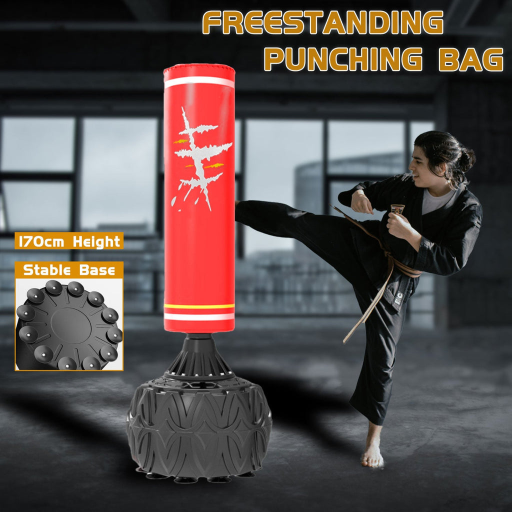 Boxing and other martial arts are booming in popularity as people discover their benefits. No longer just for self-defence, these sports increase agility and cardiovascular fitness, making them perfect for cross-training and general fitness. Now, you can train at home as well as in the gym with this free-standing punching bag. Standing at 170 centimetres, the bag simulates an opponent of about average height to make your workout as real as it gets – without the counterpunch. With high-resilience hydraulic foam padding and elastic fabric, it springs right back with each punch, protecting your hands from injury. The PU leather gives it added durability for long wear, even under heavy use. A tethered loop on the base reduces the swing, giving you more control.