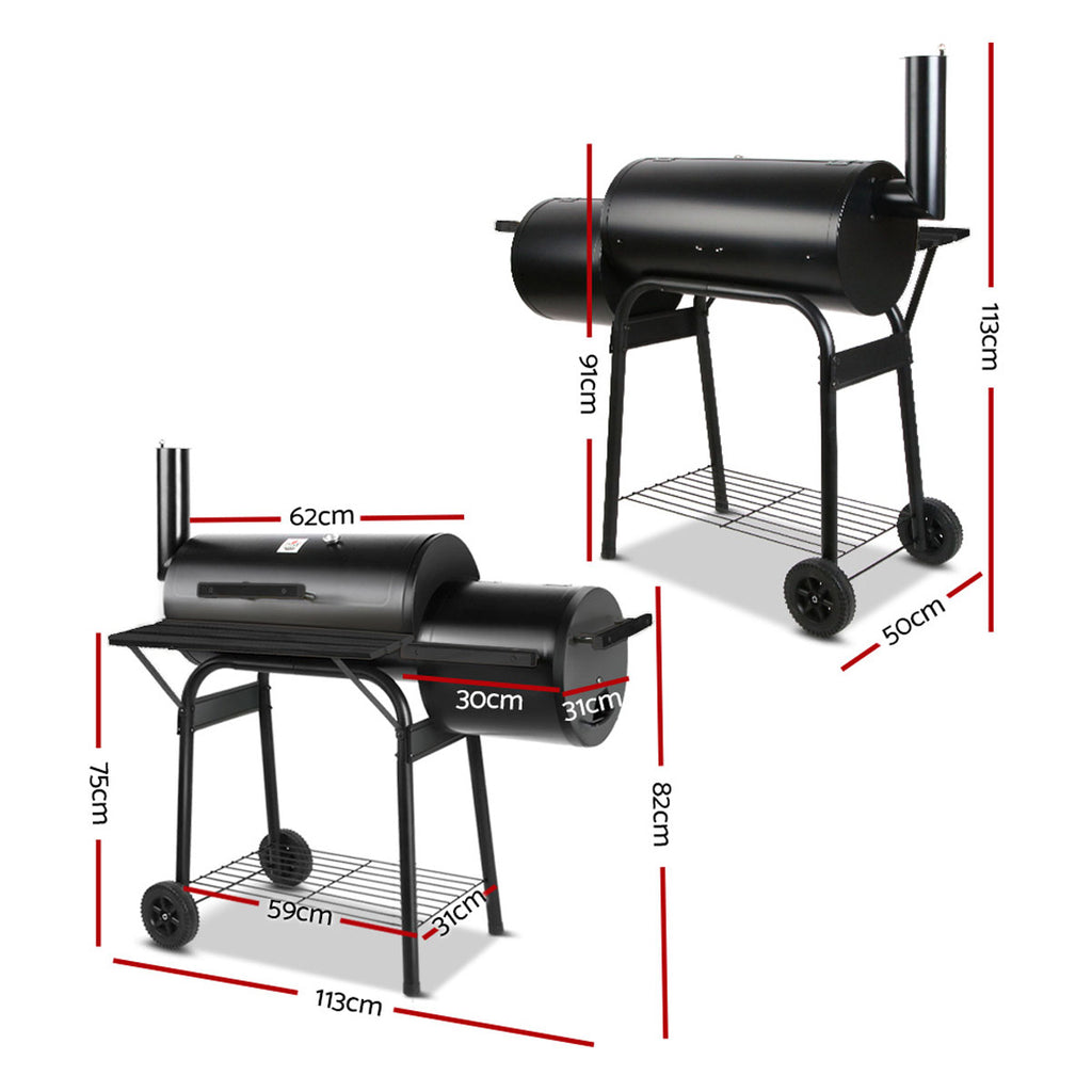 2 in1 BBQ Smoker Charcoal Grill Roaster Portable Offset Outdoor Camping Barbecue