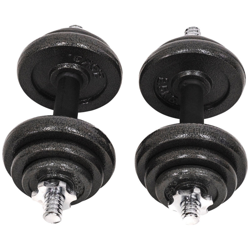 Dumbbell Set 20 KG comes in a quality plastic carry case with handle for easy storage and portability. Spinlock collars have a rubber insert to ensure the weights are secure. Additional cast iron dics can be bought separately for extra customization to get the most out of your dumbells.