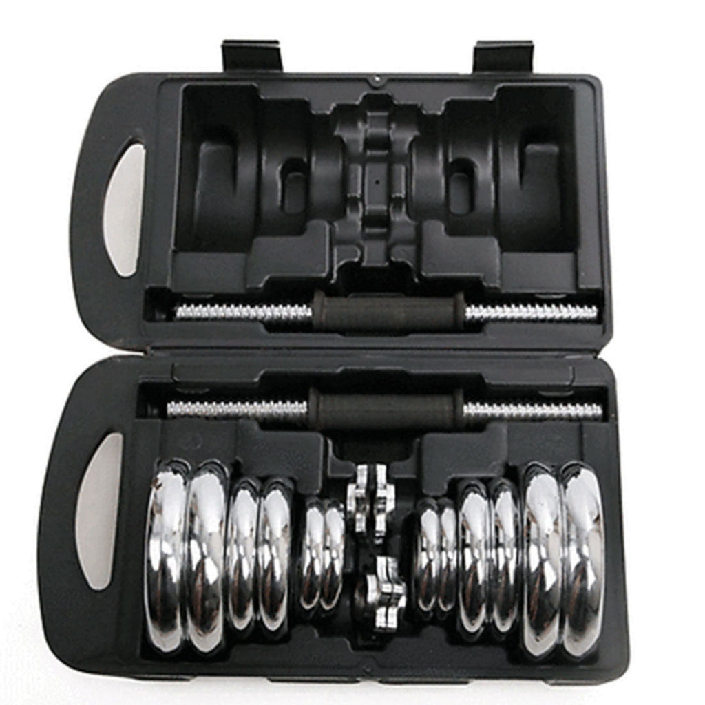 Dumbbell Set 20 KG comes in a quality plastic carry case with handle for easy storage and portability. Spinlock collars have a rubber insert to ensure the weights are secure. Additional cast-iron disc can be bought separately for extra customization to get the most out of your dumbells.