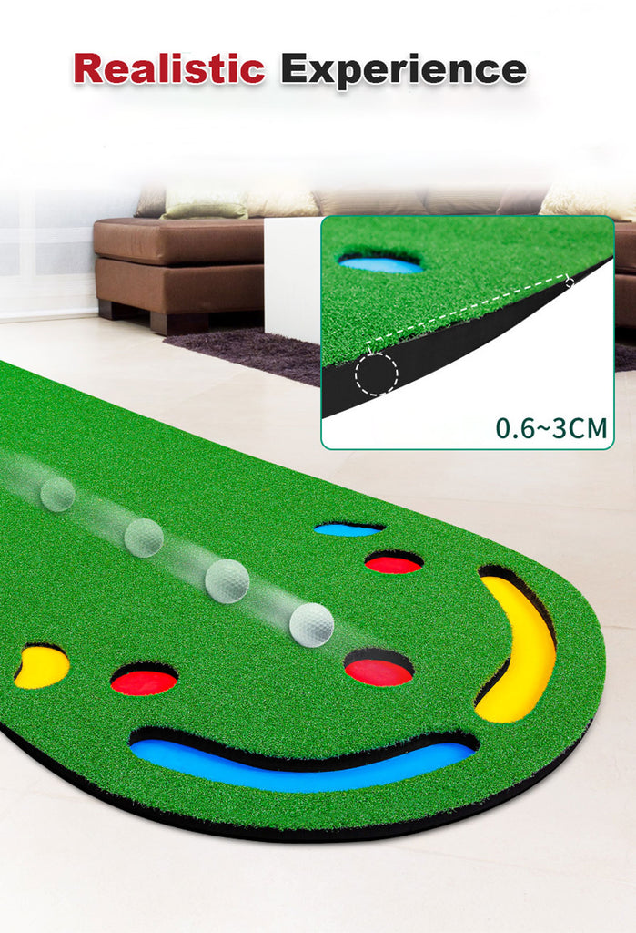 Practice your golf game anywhere with the 3m Golf Putting Mat. Suitable for beginners and experts alike, the putting mat can be used anywhere to practice thanks to its portable and foldable design. You can exercise in the home, the office, on the balcony or in your game room. It features quality material for a realistic stadium design. It features multiple holes for different practice needs.