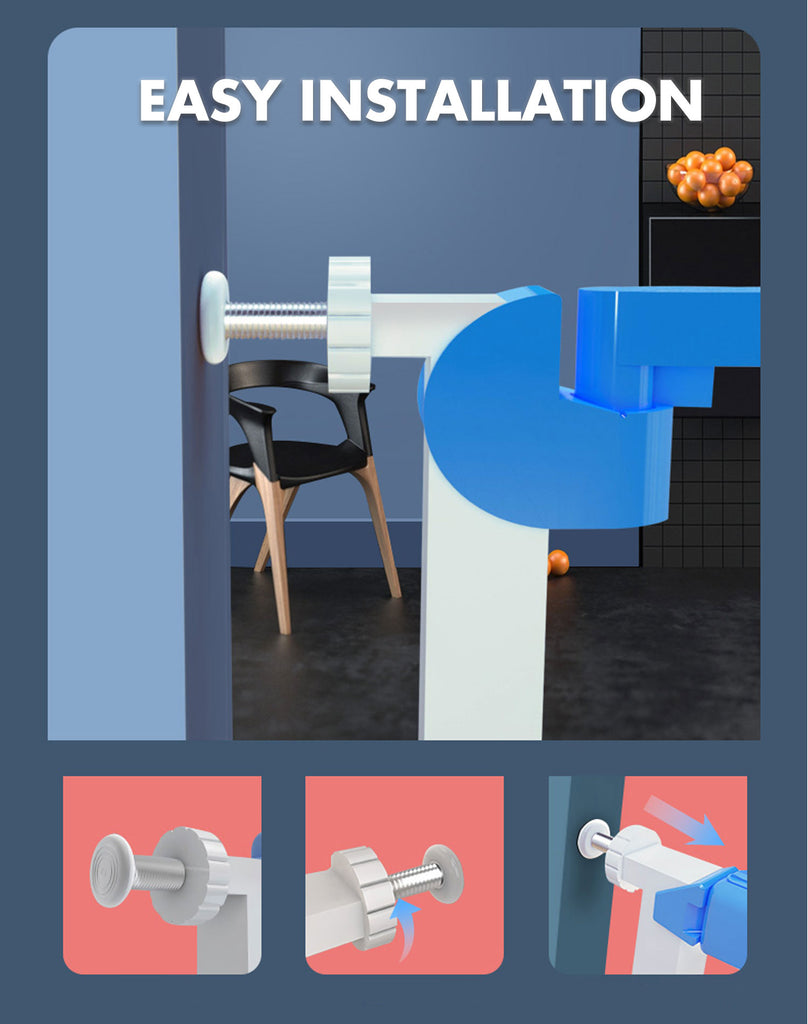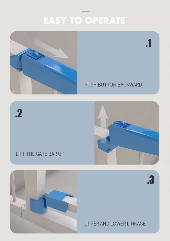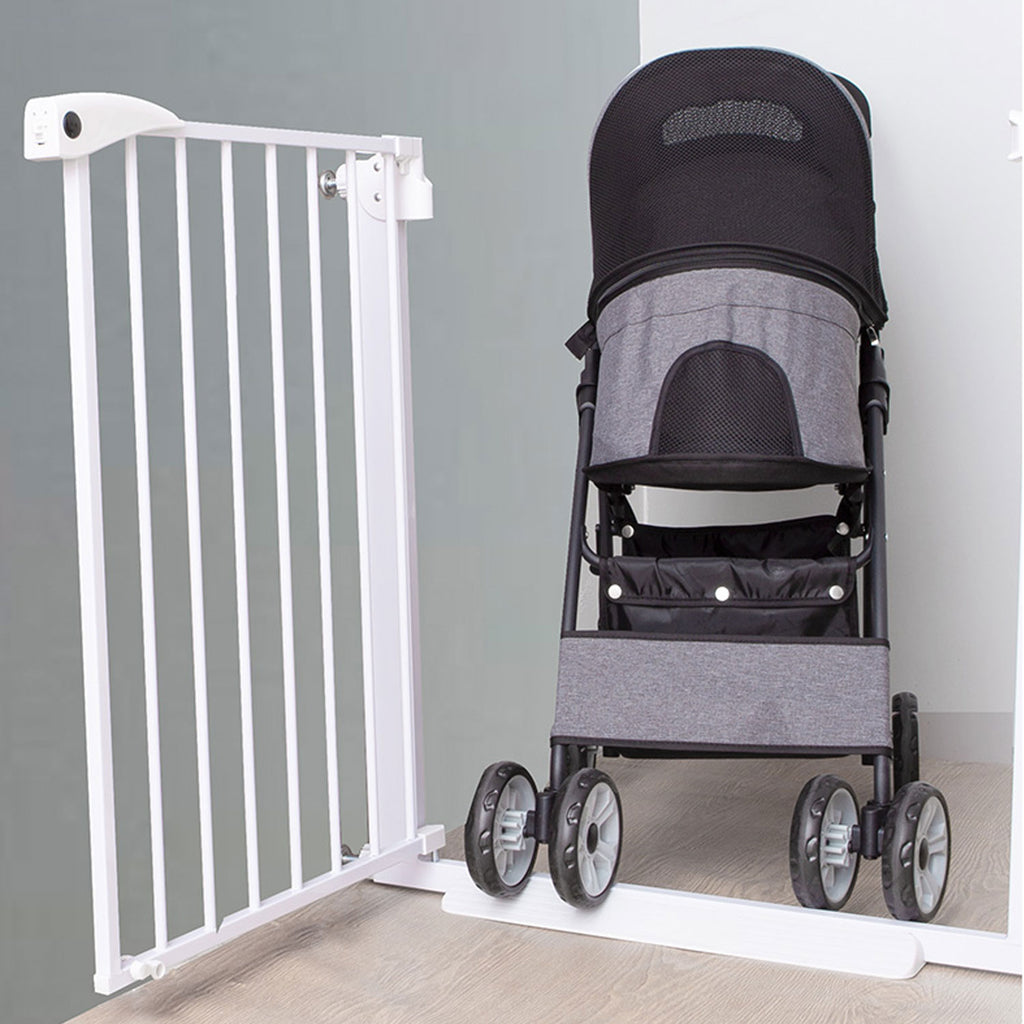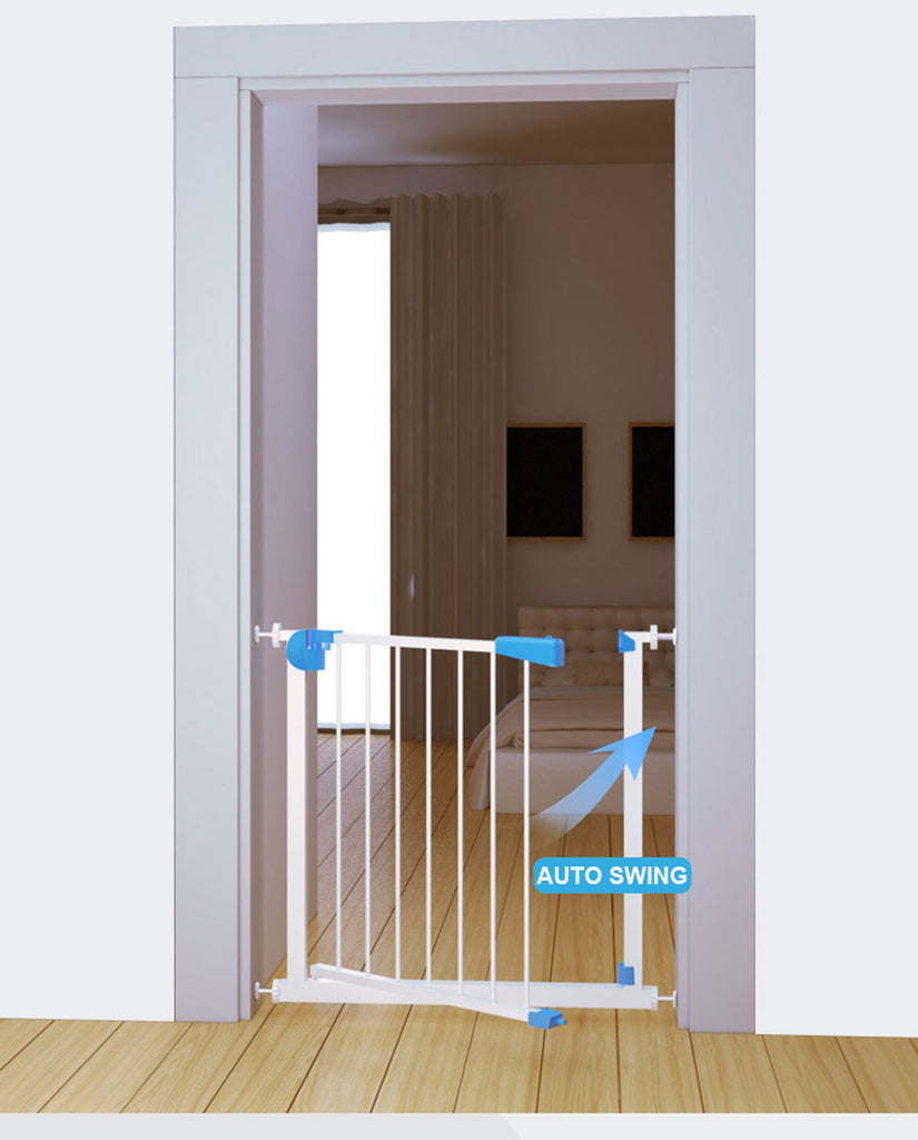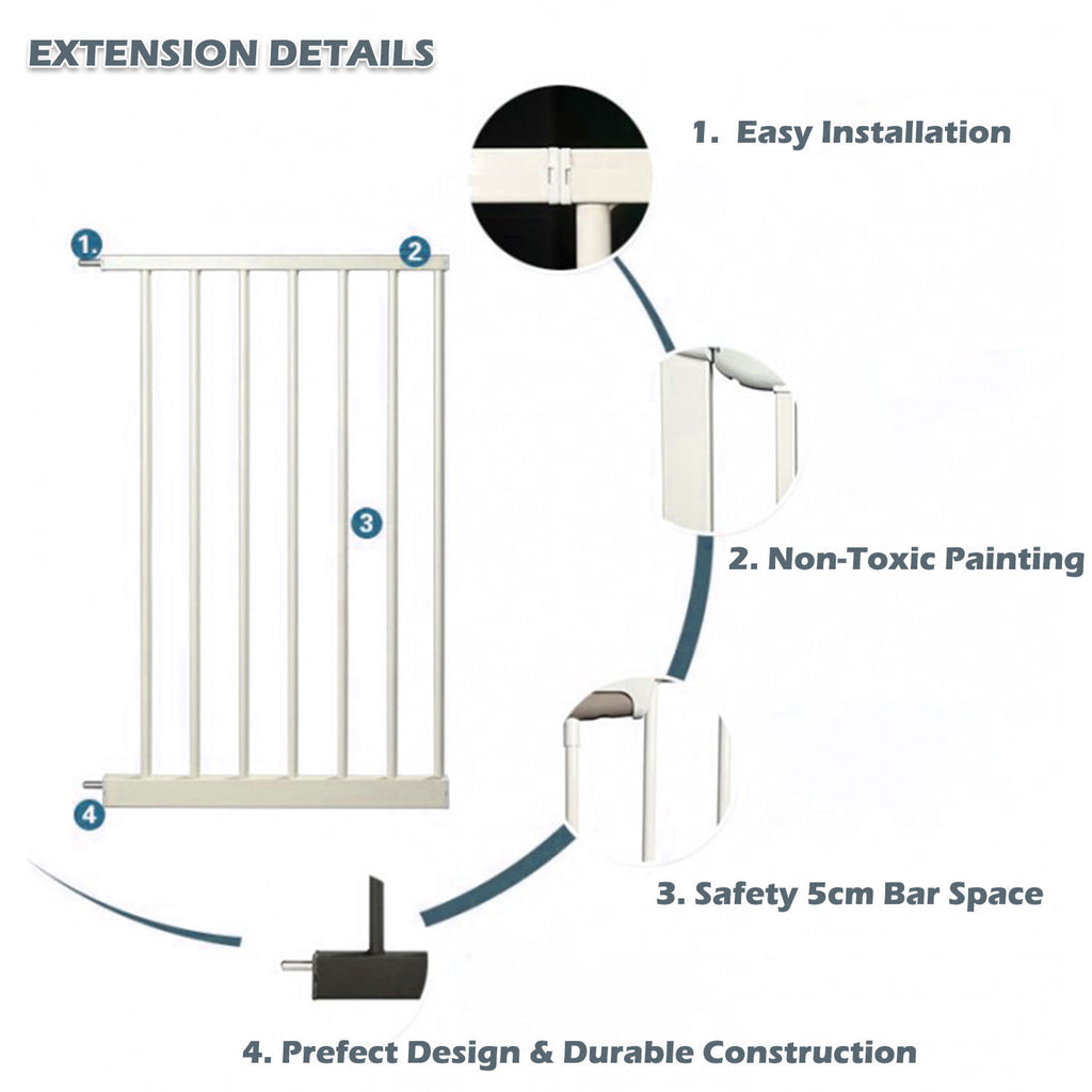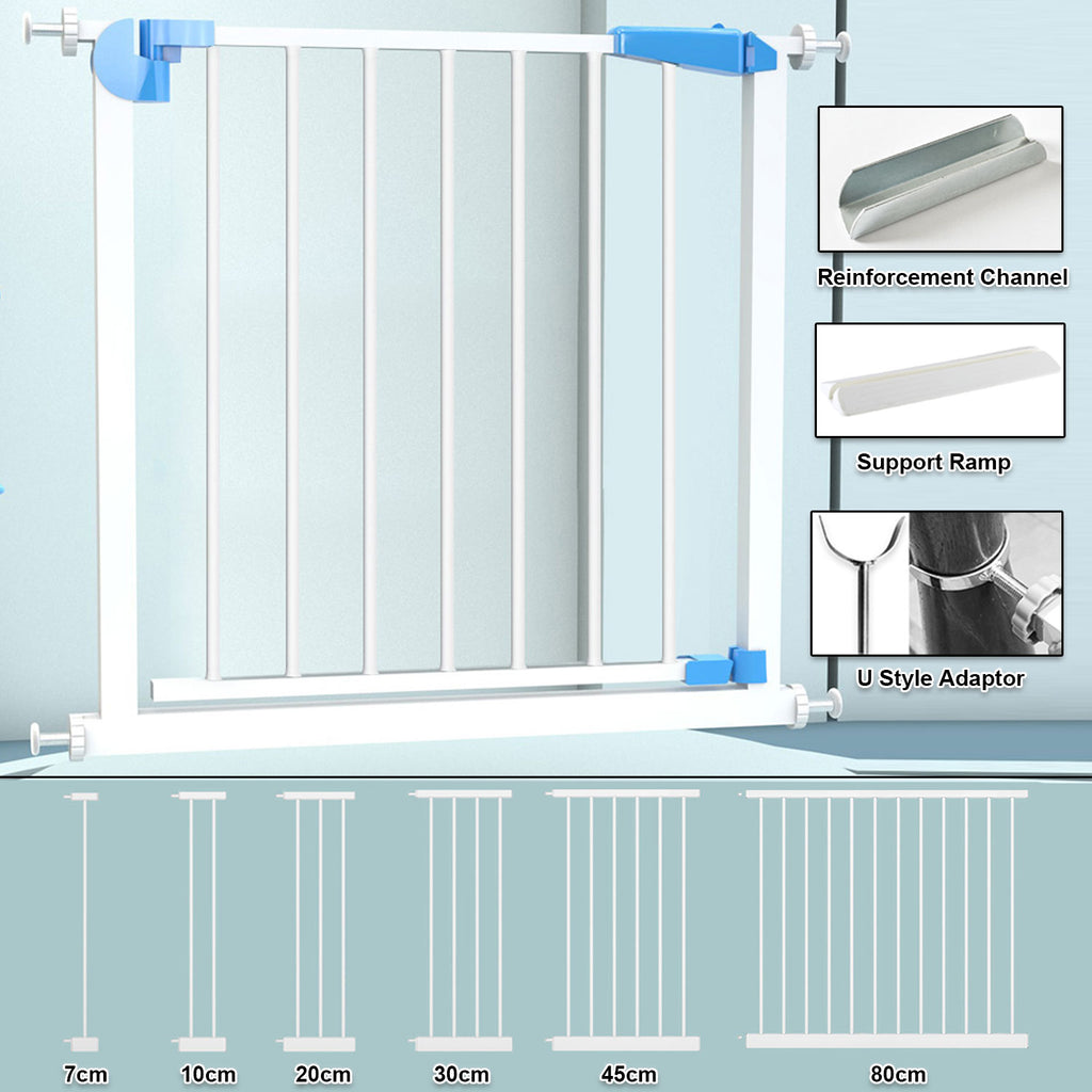 Child Pet Safety Gates Adjustable Baby Gate will be a competent helper to prevent your kids and pets from danger when you are cooking, reading or doing housework. Featuring 76cm height and 76cm to 83cm width, with optional extensions in different sizes (7cm, 10cm, 20cm, 30cm, 45cm,80cm), this child safety gates can be set up with ease in the dining room, stairs or aisles etc. With the automatic opening and closing system, this baby gate allows you to operate easily in or out of the door but not your little ones. Equipped with 3 step pass, the wide baby gate allows you can come in and go out much more conveniently and safely. Build in durable and sturdy metal material, the gate adds another level of protection. What are you waiting for? The kids safety gates are doomed to be your decent selection