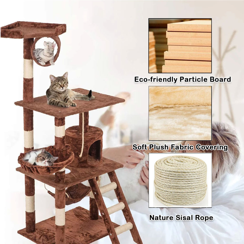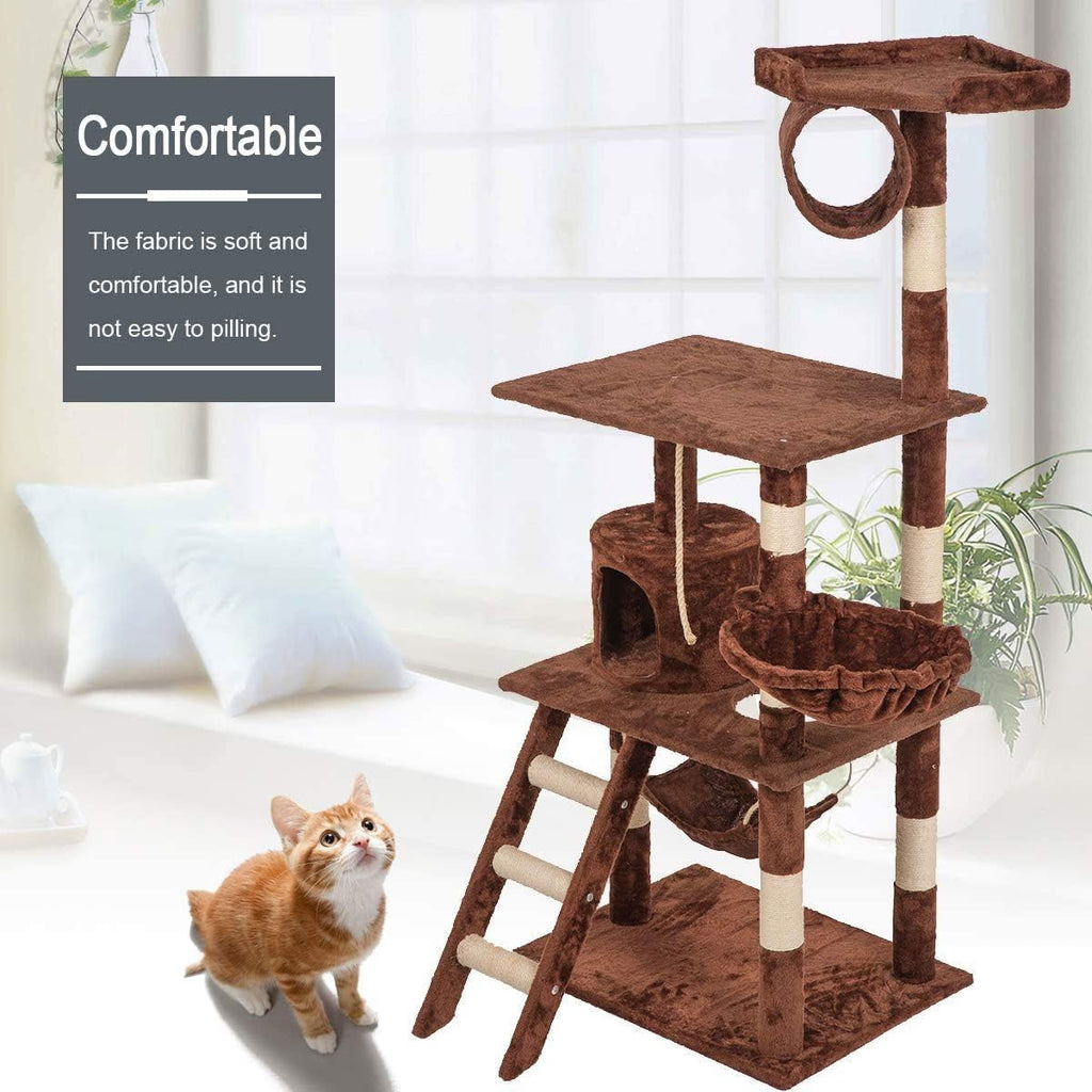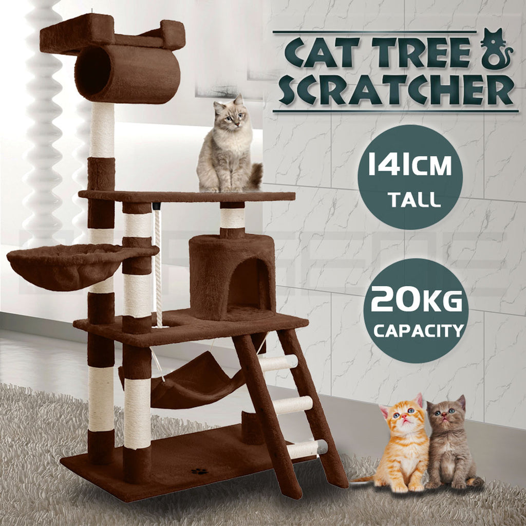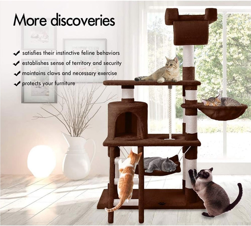 It is absolutely feline wonderland with our cat tree! Built to satisfy the natural instincts of your precious pet, our Cat Tree include a hosts of nooks and crannies for Tom and Tabby to have hours of fun scratching, hunting, climbing, jumping, hopping or simply lounging around. Plus, with its sisal-covered scratching posts, you can rest assured that your furniture will stay cat-free for a very long time. Not least, the tree is upholstered with a plush velvety surface for extra comfort and style. Best of all, the firm base and sturdy construction ensures that the tree remain a durable cat haven with total peace of mind for you. Can we hear a meow to that?