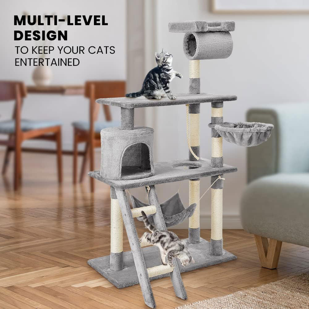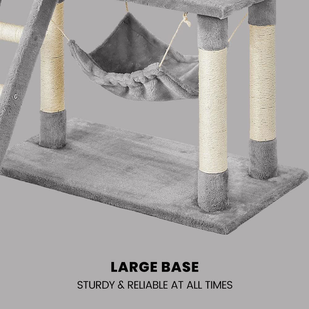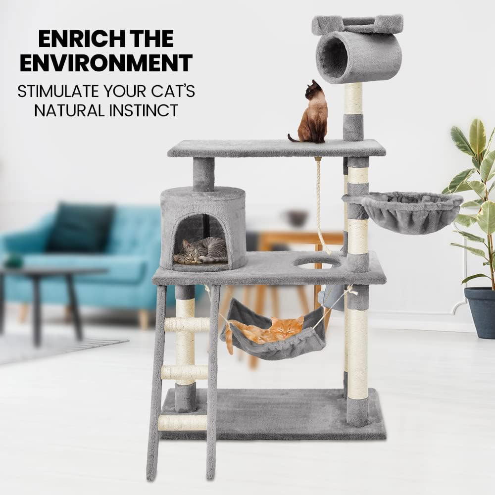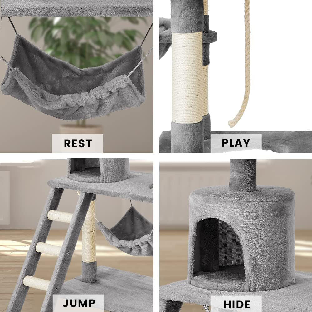 It is absolutely feline wonderland with our cat tree! Built to satisfy the natural instincts of your precious pet, our Cat Tree include a hosts of nooks and crannies for Tom and Tabby to have hours of fun scratching, hunting, climbing, jumping, hopping or simply lounging around. Plus, with its sisal-covered scratching posts, you can rest assured that your furniture will stay cat-free for a very long time. Not least, the tree is upholstered with a plush velvety surface for extra comfort and style. Best of all, the firm base and sturdy construction ensures that the tree remain a durable cat haven with total peace of mind for you. Can we hear a meow to that?