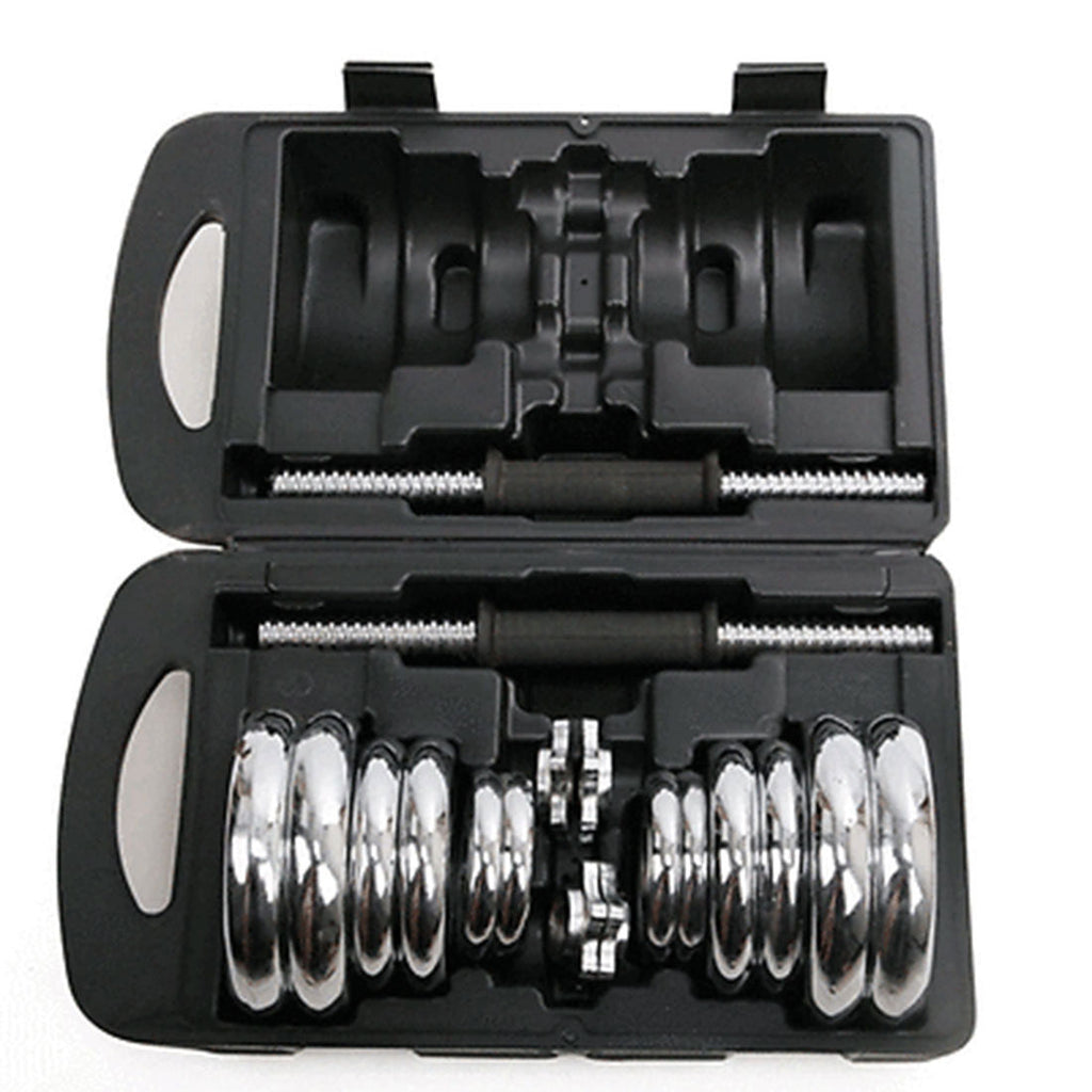 Dumbbell Set comes in a quality plastic carry case with handle for easy storage and portability. Spinlock collars have a rubber insert to ensure the weights are secure. Additional disc can be bought separately for extra customization to get the most out of your dumbells.