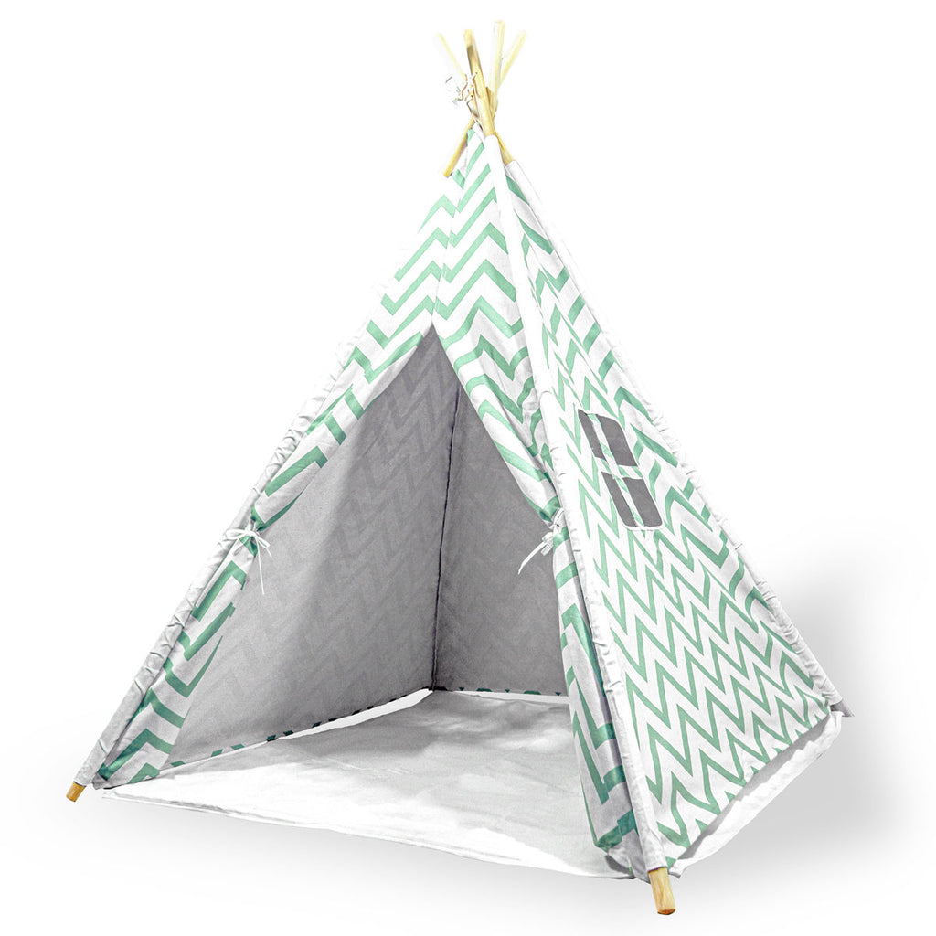 Entertaining the children will be easy with this realistic teepee. Ideal for creating magical places, elaborate games and inspiring physical activity. Suitable for both inside the house or outside in the garden, the adorable patterns and vibrant colours will make it a sure-fire hit at playtime. This teepee is finished in smooth wooden poles and covered in durable, cotton canvas. There is even a side window so you can keep an eye on what's happening from the outside, tie-down doors and a matching floor mat. Lovely to look at and lovely to think your children be entertained for hours!