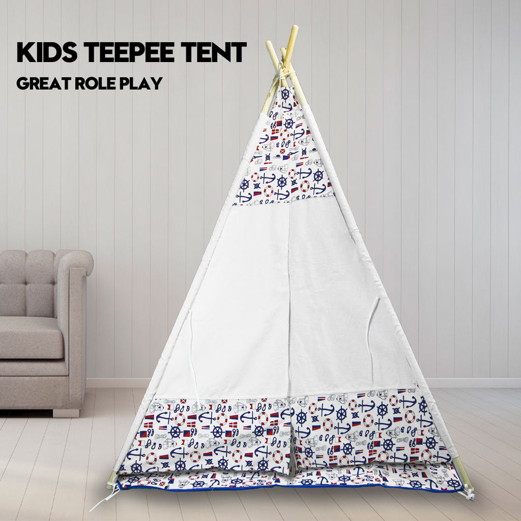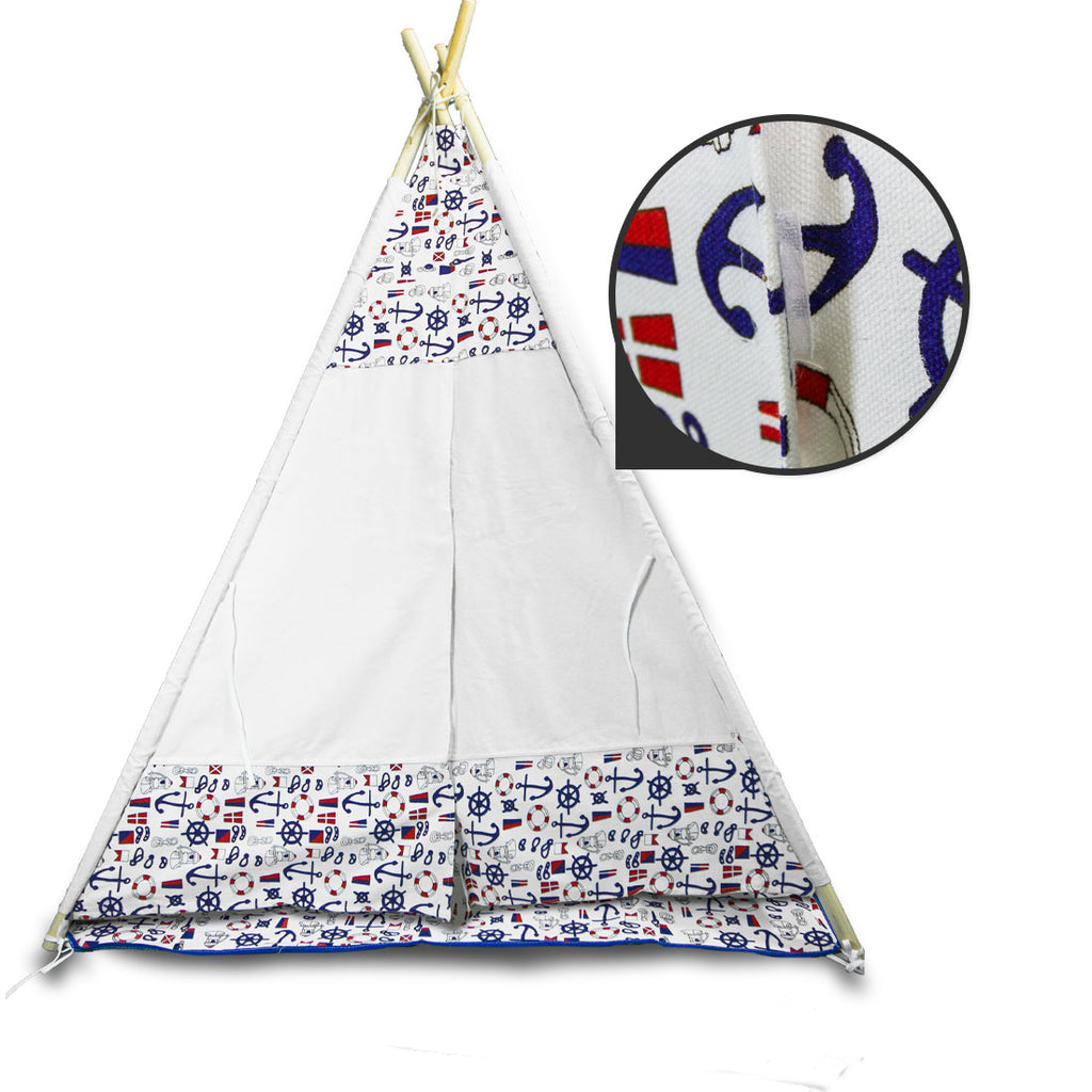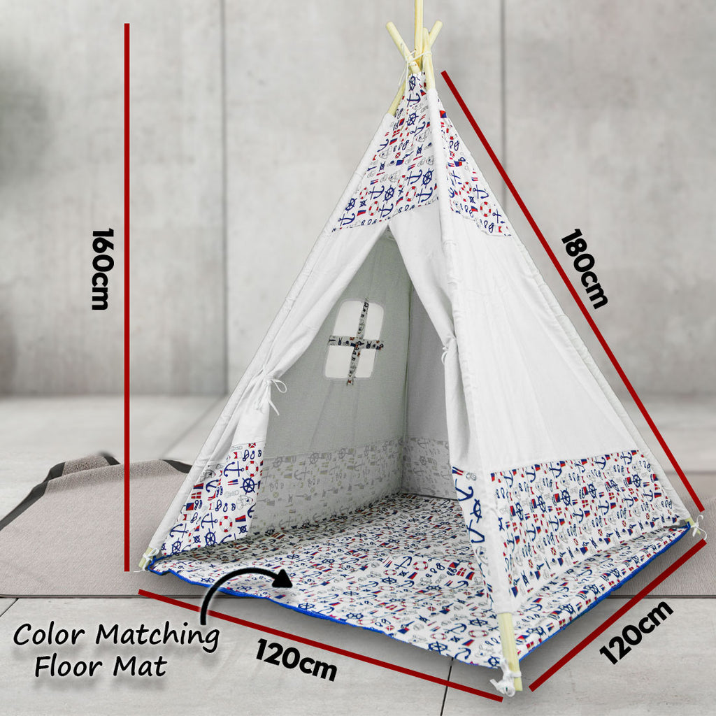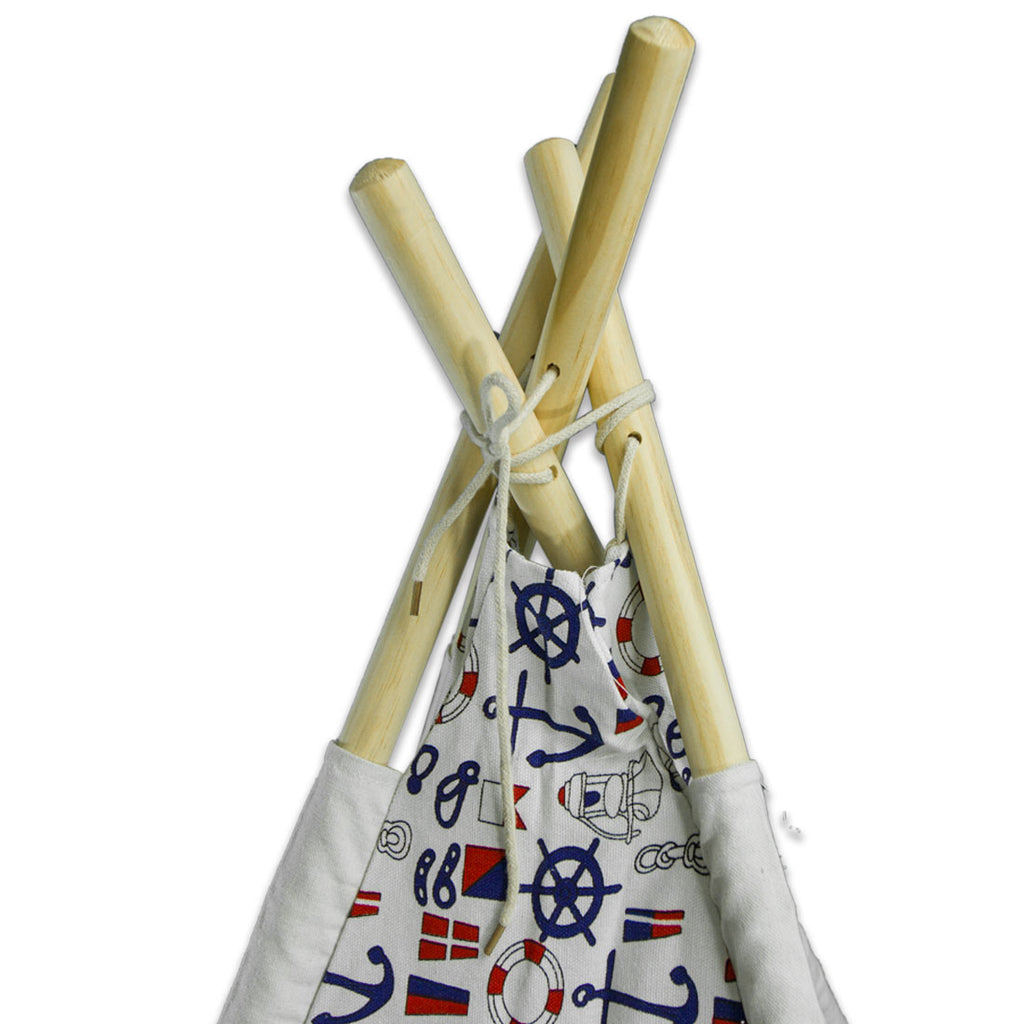 Entertaining the children will be easy with this realistic teepee. Ideal for creating magical places, elaborate games and inspiring physical activity. Suitable for both inside the house or outside in the garden, the adorable patterns and vibrant colours will make it a sure-fire hit at playtime. This teepee is finished in smooth wooden poles and covered in durable, cotton canvas. There is even a side window so you can keep an eye on what's happening from the outside, tie-down doors and a matching floor mat. The handy storage bag will make this teepee easy to pack away when it's time to rest. Lovely to look at and lovely to think your children be entertained for hours!