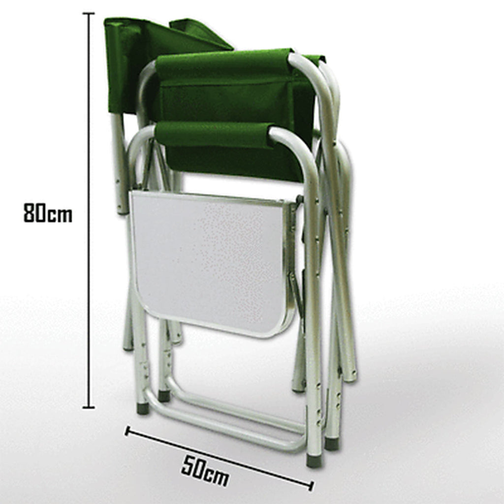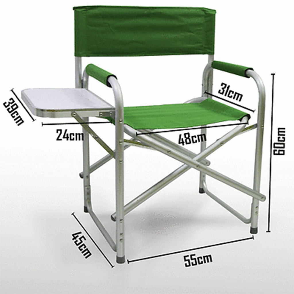 The lightweight and durable folding aluminium Director Chair is perfect for outdoor leisure. In addition to being lightweight, it is very easy to carry. The extra-wide seat (made from durable 600D polyester) and padded armrests were designed for optimum comfort. A convenient side table folds out to hold food, drinks, etc. The chair makes an excellent gift.