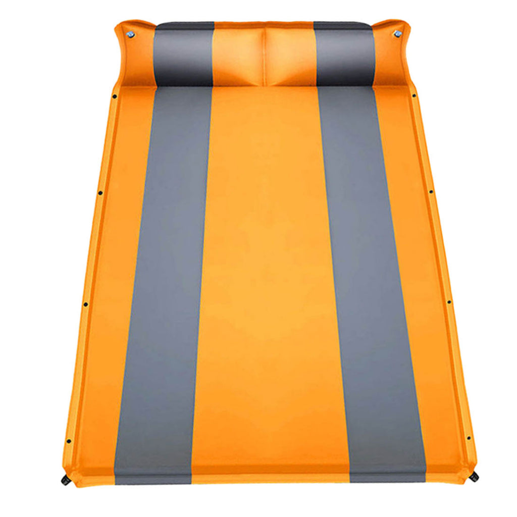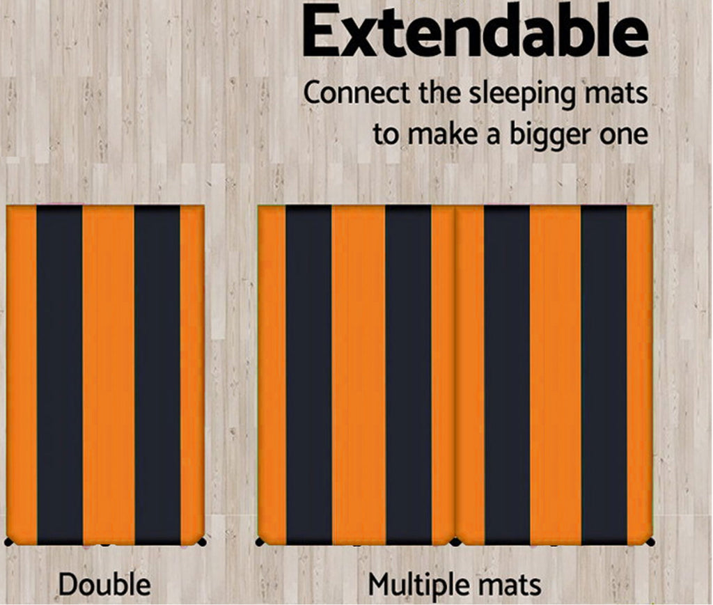 Double Self Inflating Mattress Sleeping Mat Air Bed Camping Camp Hiking Joinable Pillow - orange