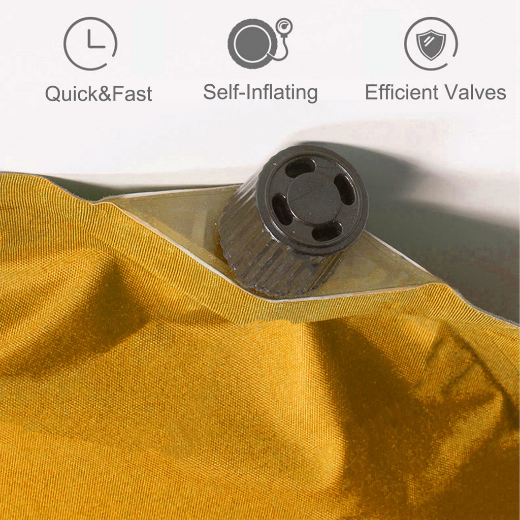 As the name says it all, the water-resistant Mat self-inflates through built-in valves in just 60 seconds, presenting you with a smooth sleeping surface amidst all types of terrain almost instantly. Made from high density polyurethane foam, the Mat is wrapped with a smooth surface top and anti-slip polyester pongee bottom. That way, you lie on a smooth and comfortable surface with a mat that does not slip or move with your every turn while sleeping or shifting around.