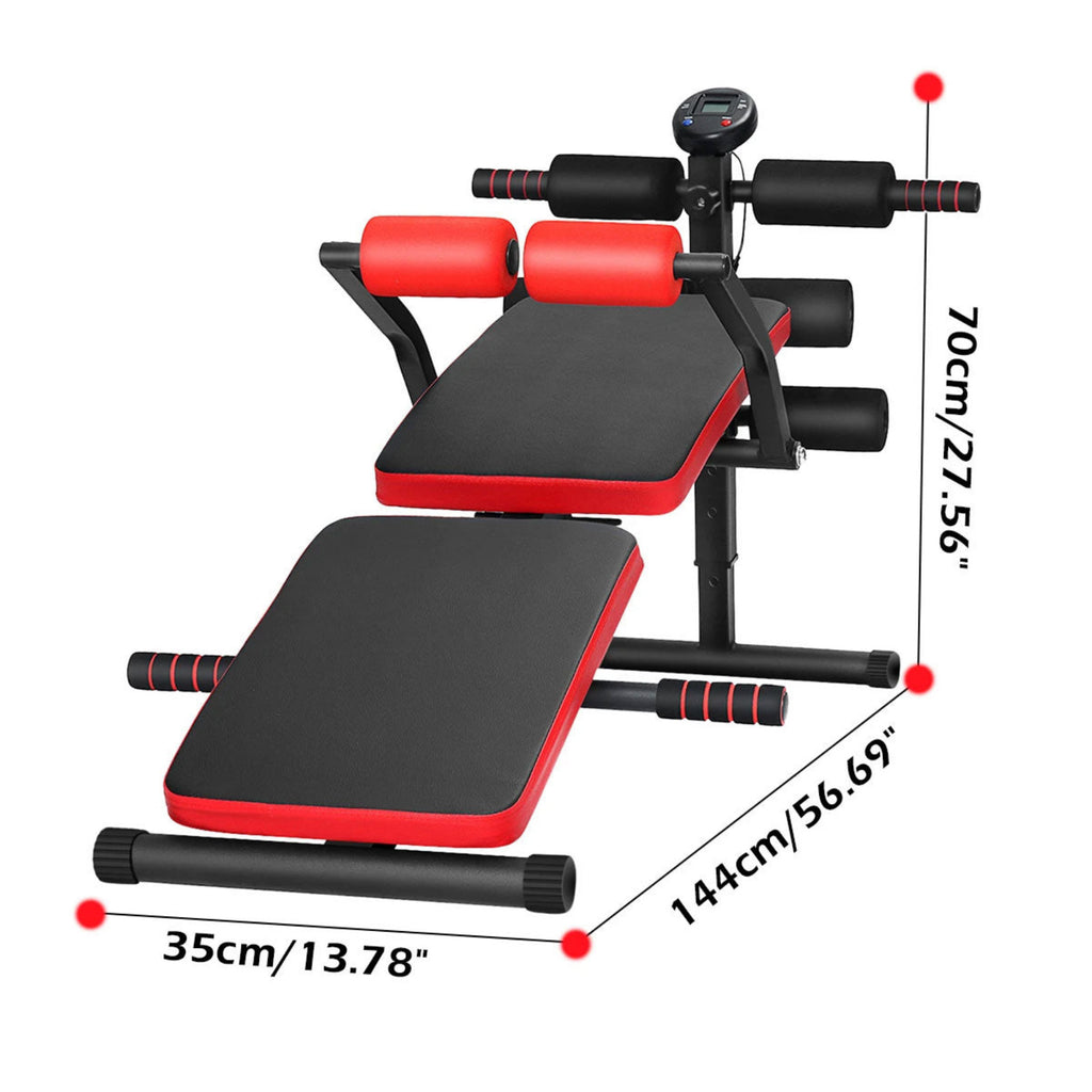 This is the ultimate in fitness versatility, all compact into one versatile weight sit up bench! The bench features multi adjustable positions on the back, seat and leg to provide total muscle tone and fitness. Get creative with your workouts as the options are only limited by your imagination. Bench press from the top up or top down, do press ups like a pro or integrate weight work or tension straps for ab sculpting. Made from high grade powder coated steel with a soft, comfortable foam cushioning bench covered with low maintenance PU leather. Great for setting up your own gym anywhere in the home or backyard without leaving the house or paying hefty gym fees!
