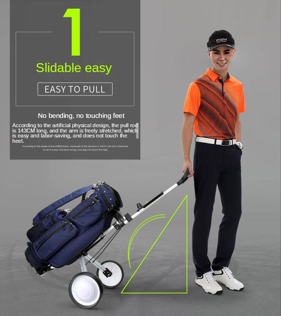 Designed with golfers in mind, the foldable feature makes storage and transportation a breeze, fitting easily into the trunk of your car or locker. The durable construction guarantees longevity, while the ergonomic handle ensures a comfortable grip during those long walks on the fairway. Say goodbye to the hassle of lugging your golf bag around and elevate your golfing experience with the convenience of our Foldable Golf Bag Trolley Buggy – where style meets functionality on every green.