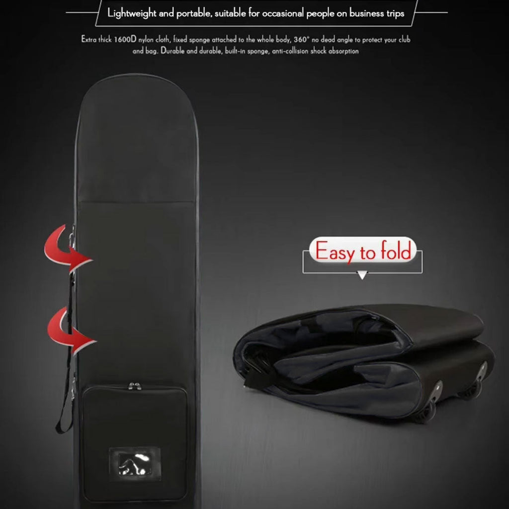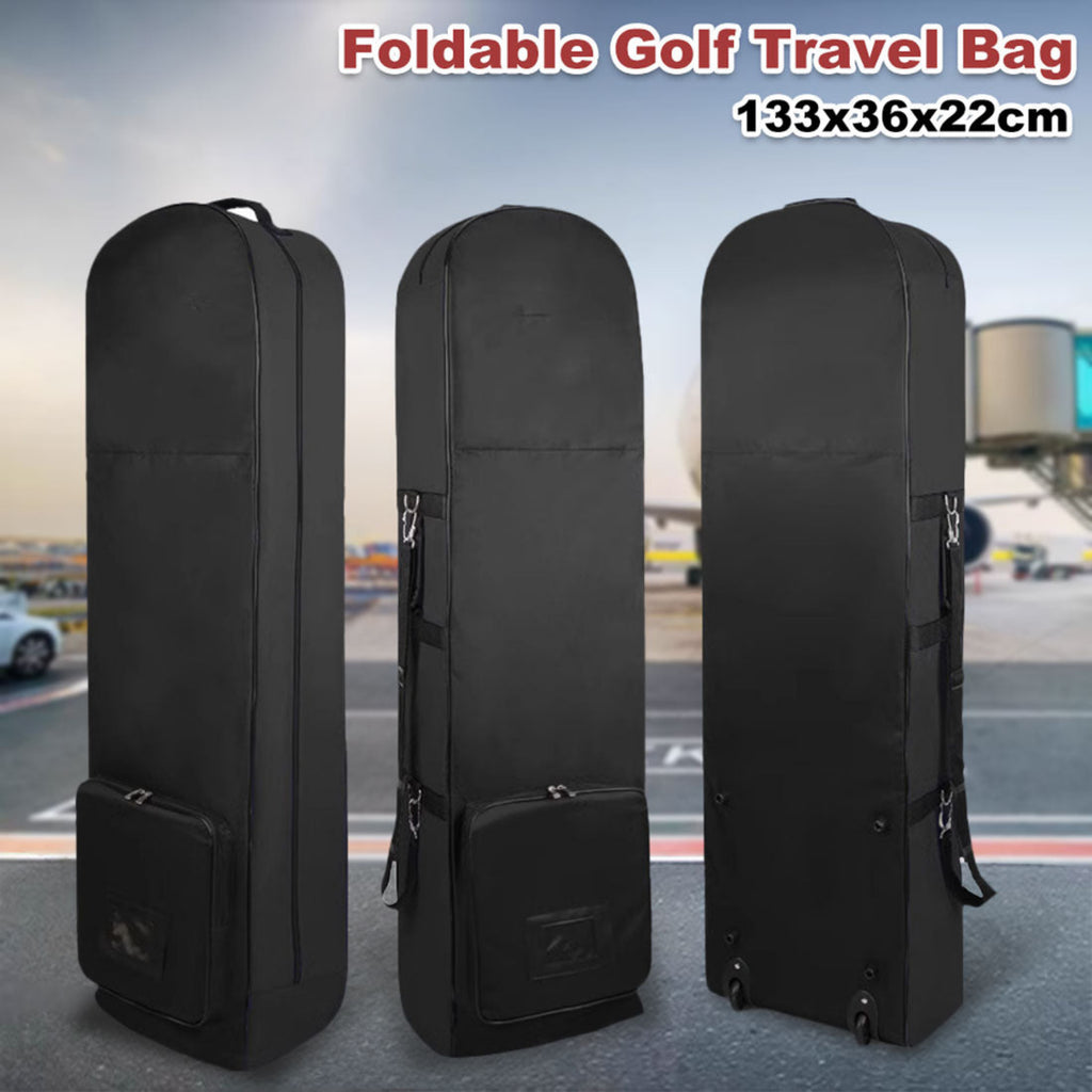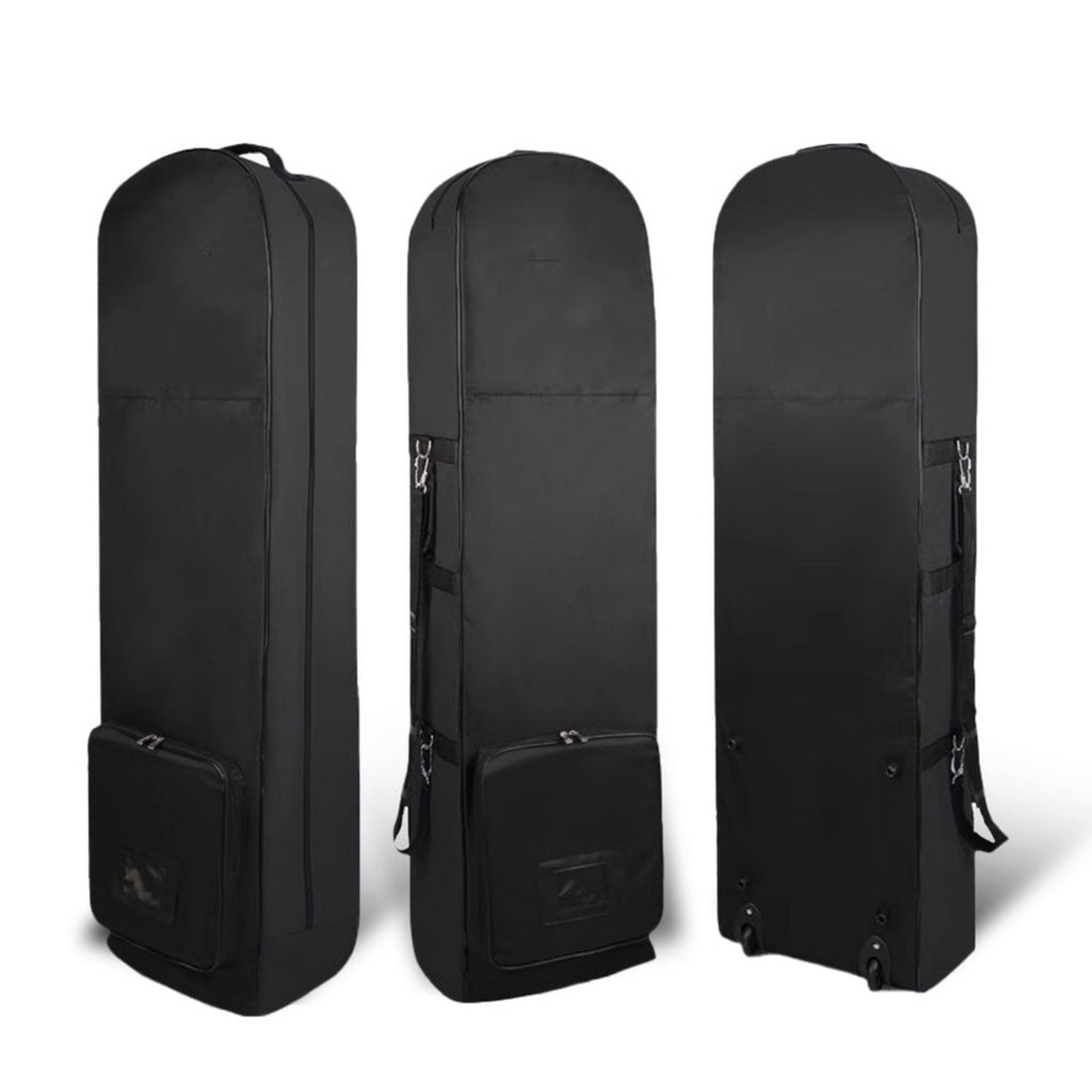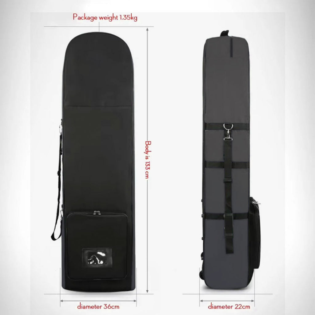 This Golf club travel bag features high quality lockable zippers and reinforced handles. Zippers open fully to allow simple insertion of your golf bag. Durable nylon golf bag cover for travelling. Easily take your golf clubs on your flights with our waterproof golf travel bags with wheels. Our golf bag travel cover is easy to carry and easy to load onto airport conveyor belts, with a shoulder strap for your convenience. Fortitude Sports Golf Travel Cover has built in wheels which allow easy manoeuvring/towing of your clubs whilst on your journey/holiday. Fits bags up to 133cm x 36cm x 22cm in size. When not in use the golf bag travel case is foldable for easy, convenient storage.
