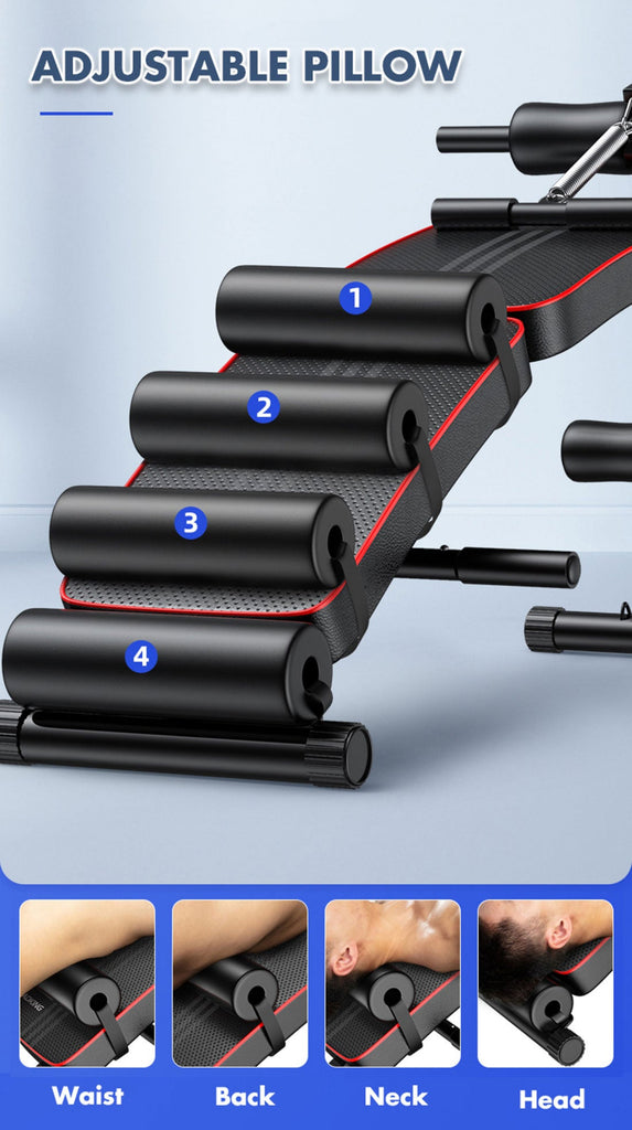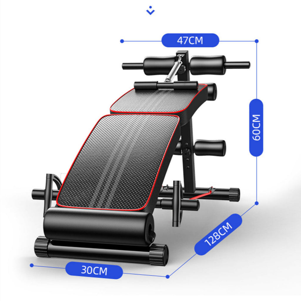 Our foldable multifunctional Sit-up Bench is the ultimate fitness equipment to complete your home fitness workout. The highly versatile and compact workout station not only helps with toning and strengthening your muscles, it also helps improving efficiency of your cardio-vascular system and burning extra calories and reducing fat faster. The intensity of workout can be easily and quickly adjusted by using the pop pin to adjust the angle of the bench. Featuring durable powder-coated steel tube construction, waterproof and oil-resistant PU leather and non-slip feet, the sit-up bench can easily withstand even high-intensity exercises. It also comes with bonus resistance bands to add variety to your workout. And best of all, the bench is fully foldable and portable, and highly convenient for storage.