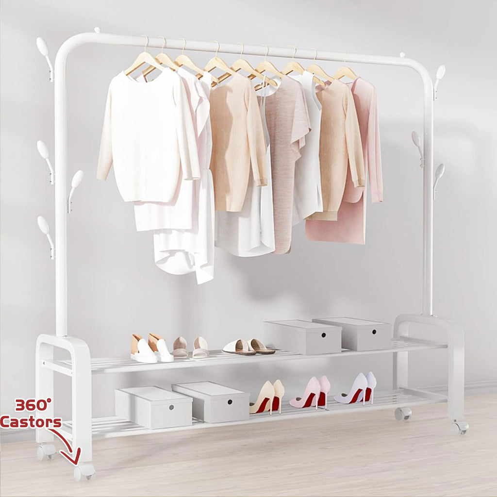 Heavy Duty Portable Clothes Garment Hanging Rack Shoe Storage Shelf Organizer Hanger Dryer - white
