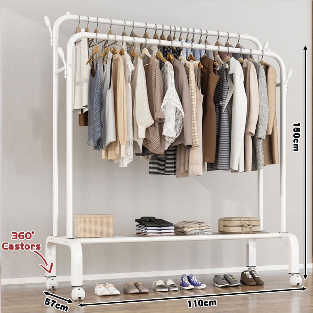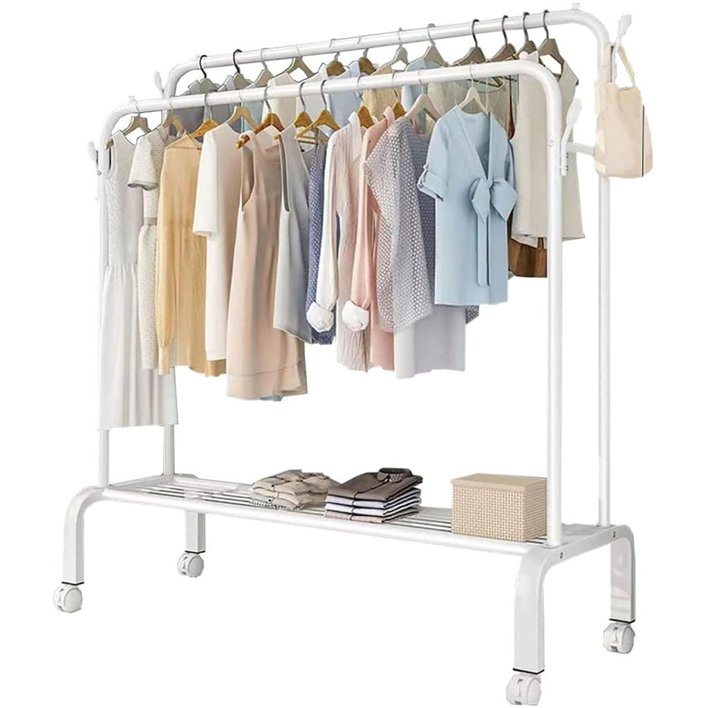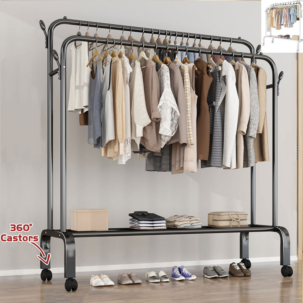 This Portable Multi-Function Clothes Rack will come in handy for storing or drying clothes. Keep your clothes organized with this portable clothes rack - the rail has removable castor wheels so you can move it around easily and quickly, ideal for taking with you on the go! Sturdy and durable, this multifunctional clothes rack will hold a large load of clothes with its strong stainless steel frame and two cross bars at the bottom to prevent it from swaying. The mobile design makes this rail the perfect storage solution for your clothes.