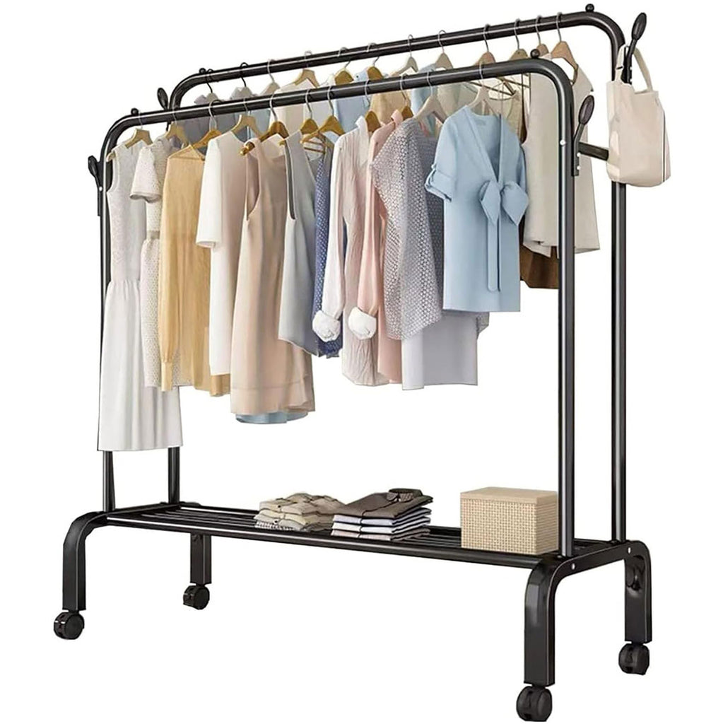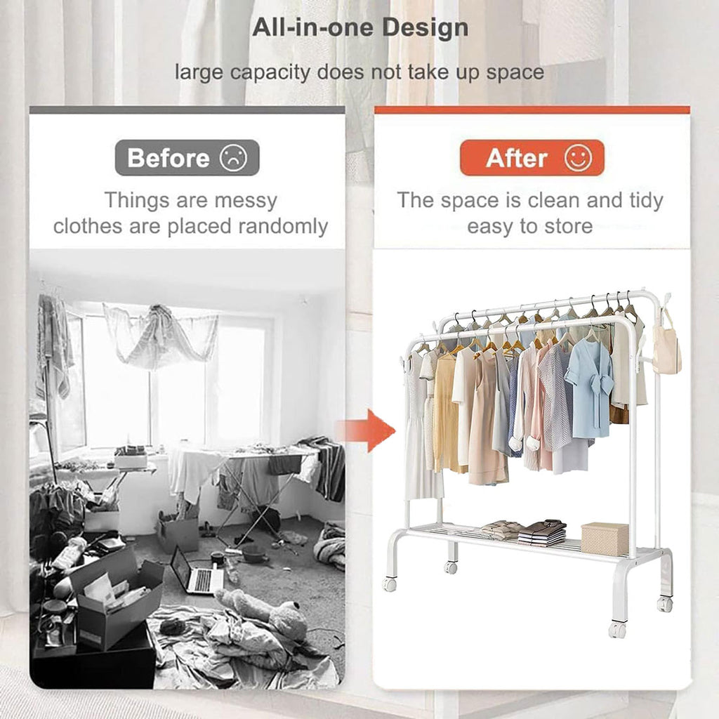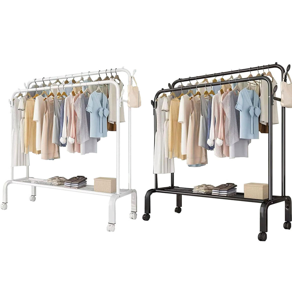 This Portable Multi-Function Clothes Rack will come in handy for storing or drying clothes. Keep your clothes organized with this portable clothes rack - the rail has removable castor wheels so you can move it around easily and quickly, ideal for taking with you on the go! Sturdy and durable, this multifunctional clothes rack will hold a large load of clothes with its strong stainless steel frame and two cross bars at the bottom to prevent it from swaying. The mobile design makes this rail the perfect storage solution for your clothes.