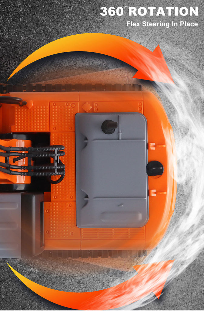 The 2.4GHz transmitter allows for 15 seperate function, allowing control of all of the models joints including 680° cab rotation. 2.4GHz technology allows for multiple models to run at the same time without interference. The transmitter can also be programmed to allow you to perform a series movements with just one button.