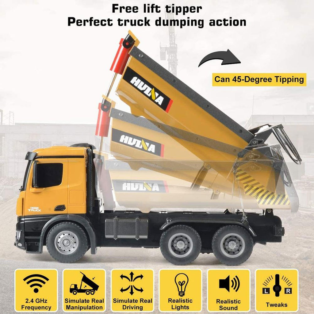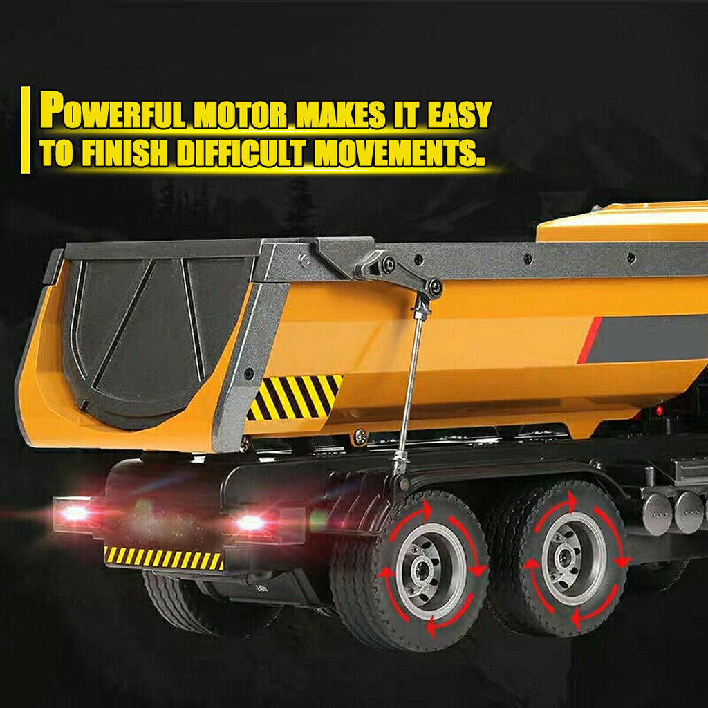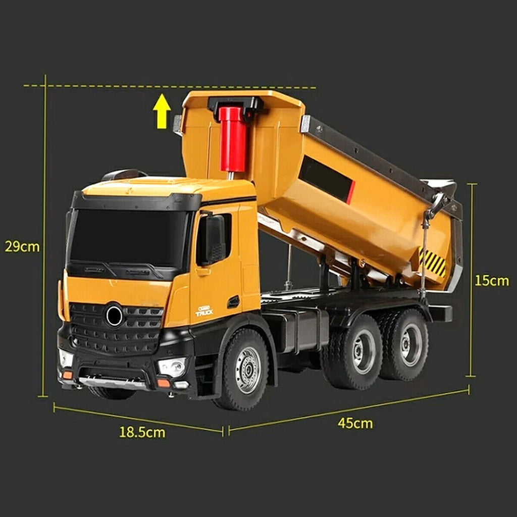 Drive your imagination further with our remote-controlled 10-channel tipper truck.