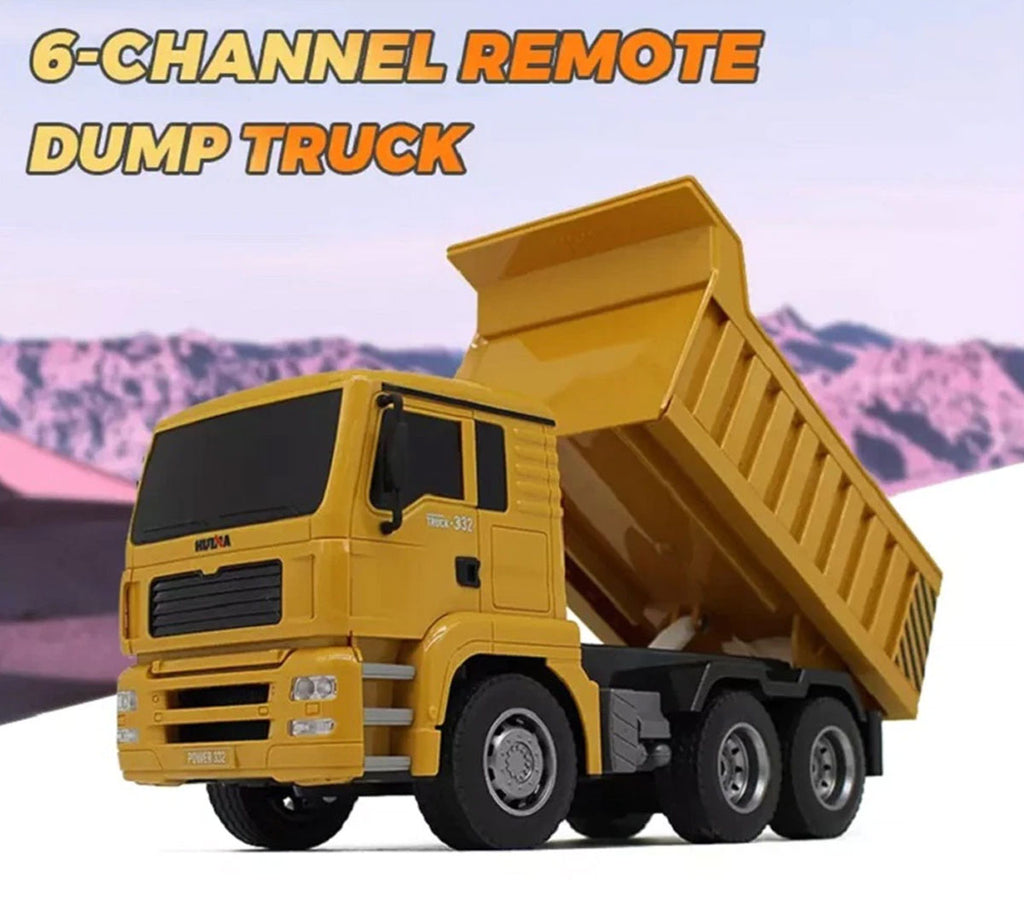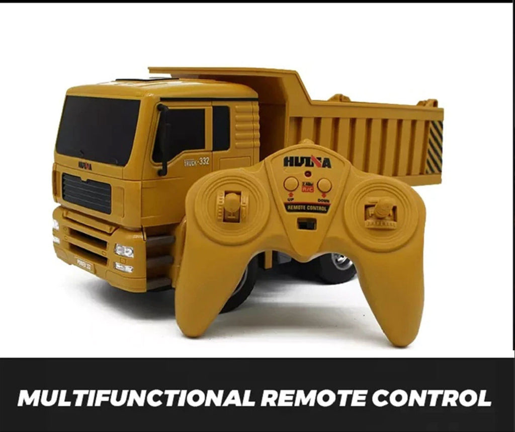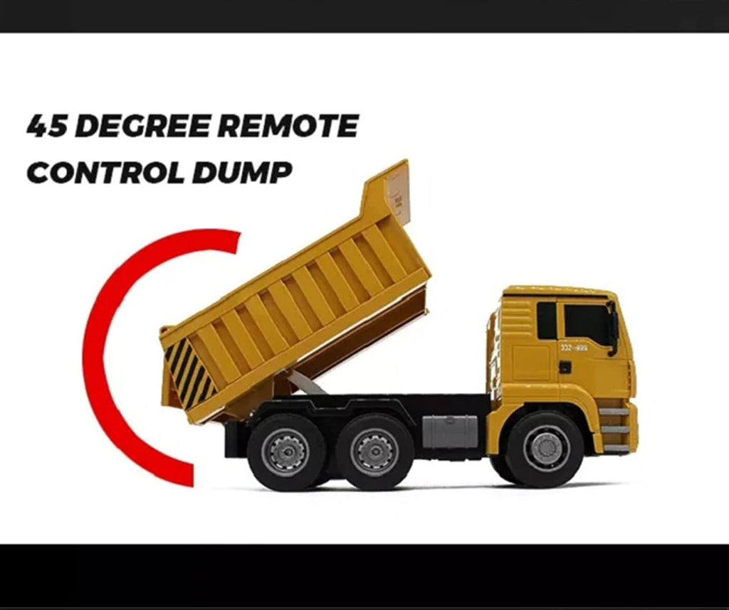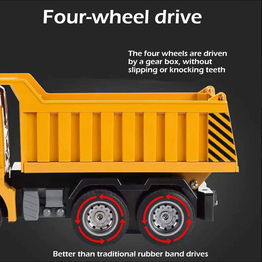 Features a 4-channel directional movement. The dump truck features a rising and tilting rear bed where the rear section rises to drop your load at the worksite.
