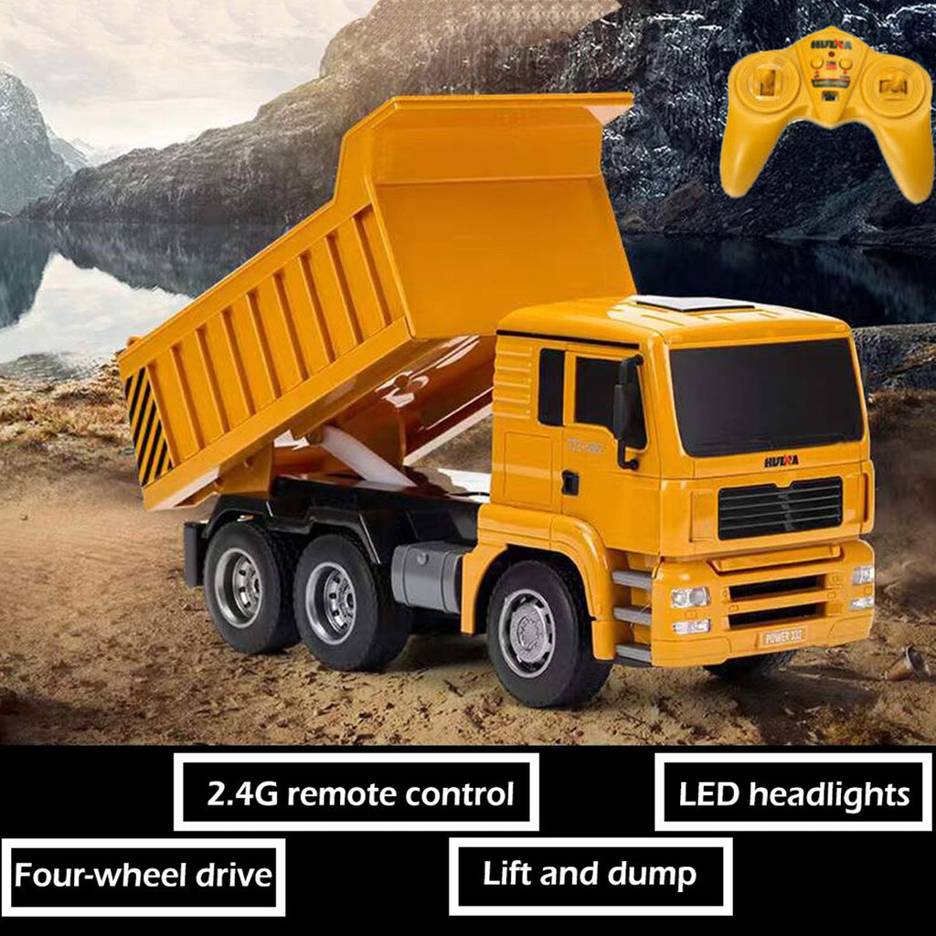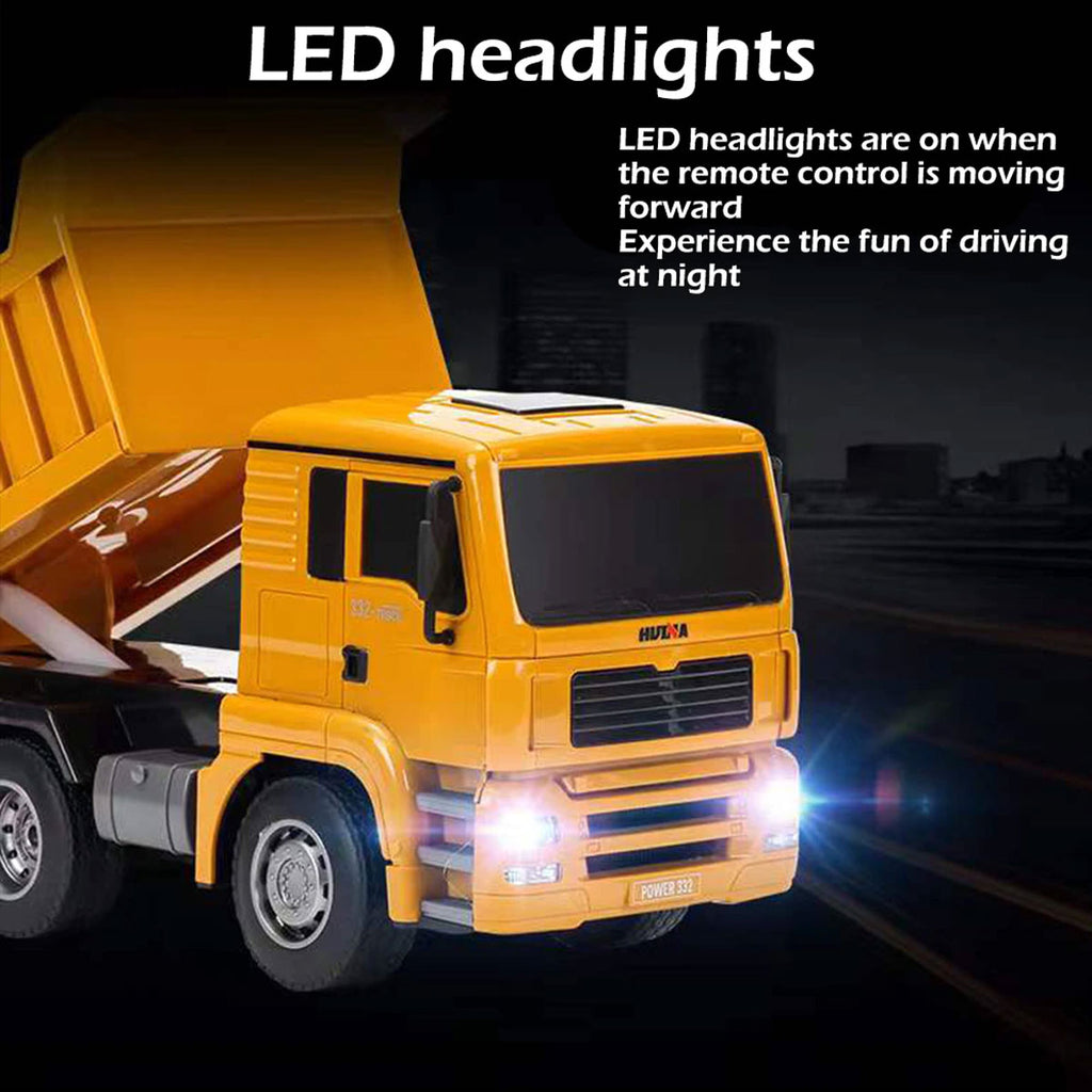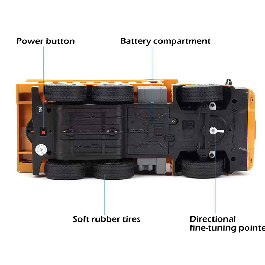 Features a 4-channel directional movement. The dump truck features a rising and tilting rear bed where the rear section rises to drop your load at the worksite.
