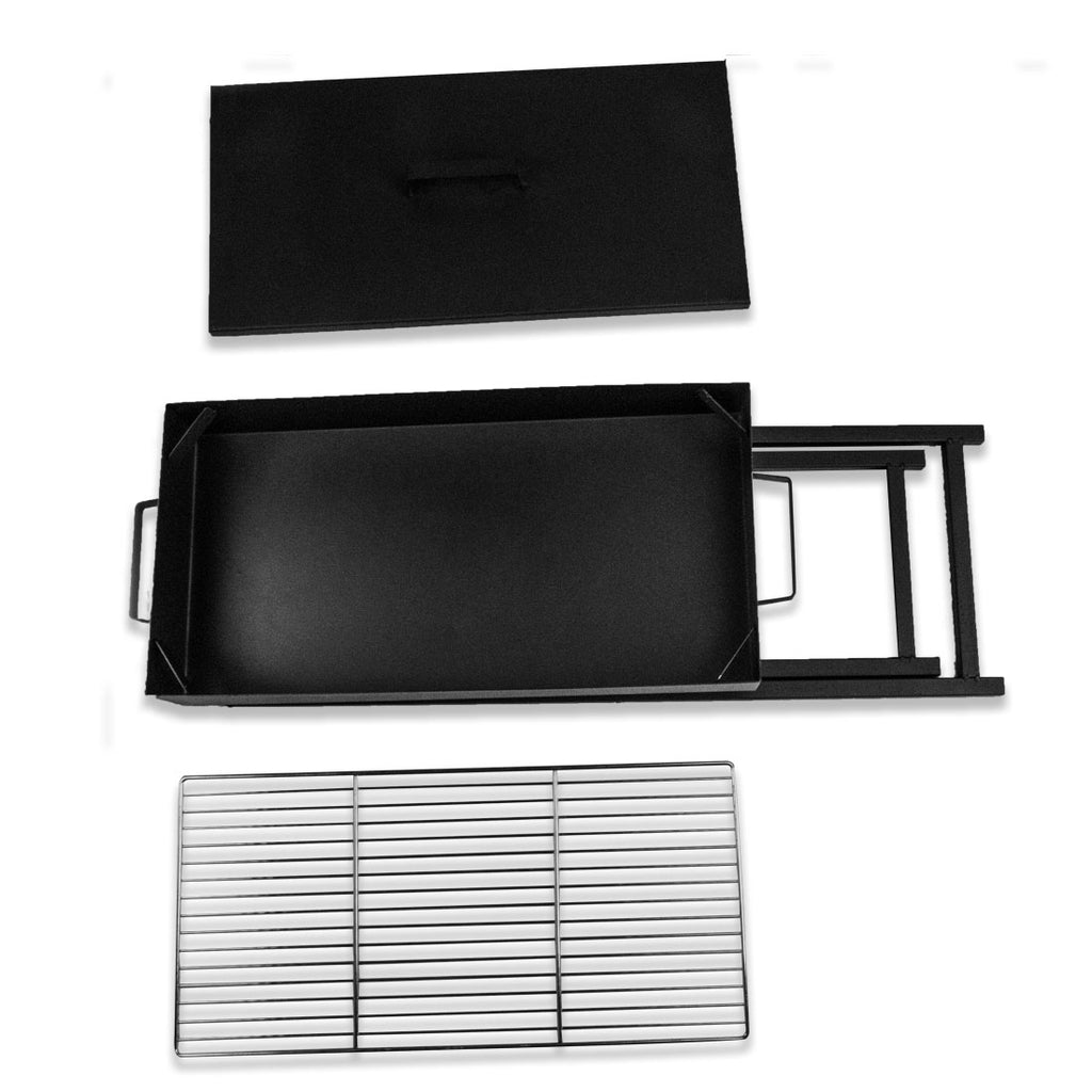 This traditional charcoal or wood BBQ grill is great for those who want the great taste of a charcoal or wood BBQ without the hassle. It is very portable with foldable legs and its heavy duty steel construction adds to the overall robust design. Enjoy authentic smoky barbecue flavors with the charcoal or wood fuelled. The BBQ grill also features sturdy legs and is foldable making it portable enough to take it with you for camping or picnic and move it anywhere in the backyard.