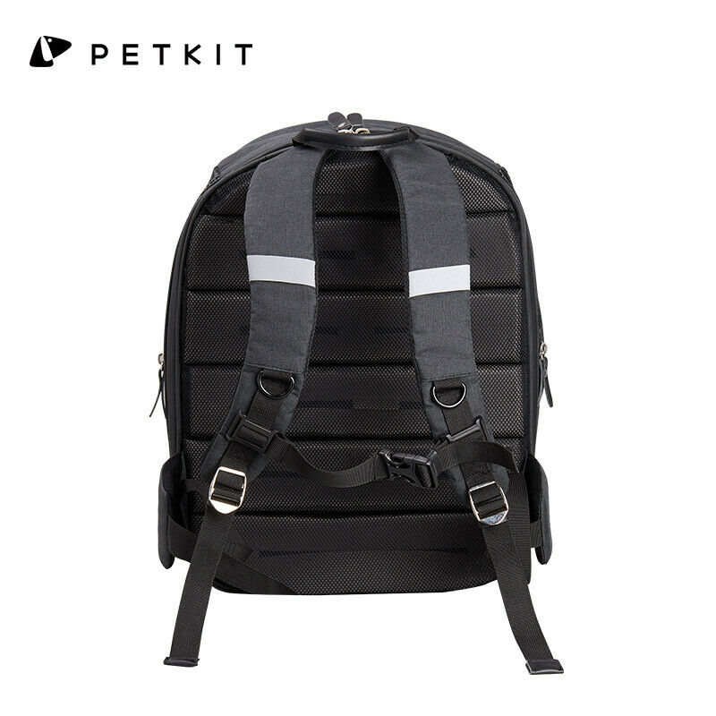 Designed with Ergonomic shock-absorbing backplate, high-tech light gram material shoulder strap which evenly distributes stress to reduce the burden of pressure. Hollow mesh structure ensures the back pad is ventilated, heat dissipated and sweat-proof. A MUST-HAVE pet backpack you will never regret having.