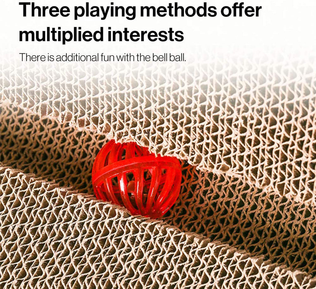 The multi-purpose scratching post and toy for cats is made of new pulp raw material with maximal durability.