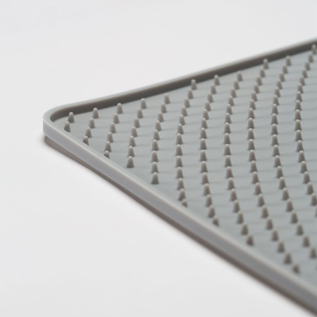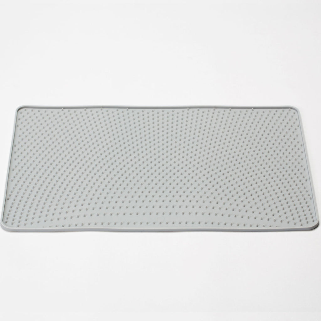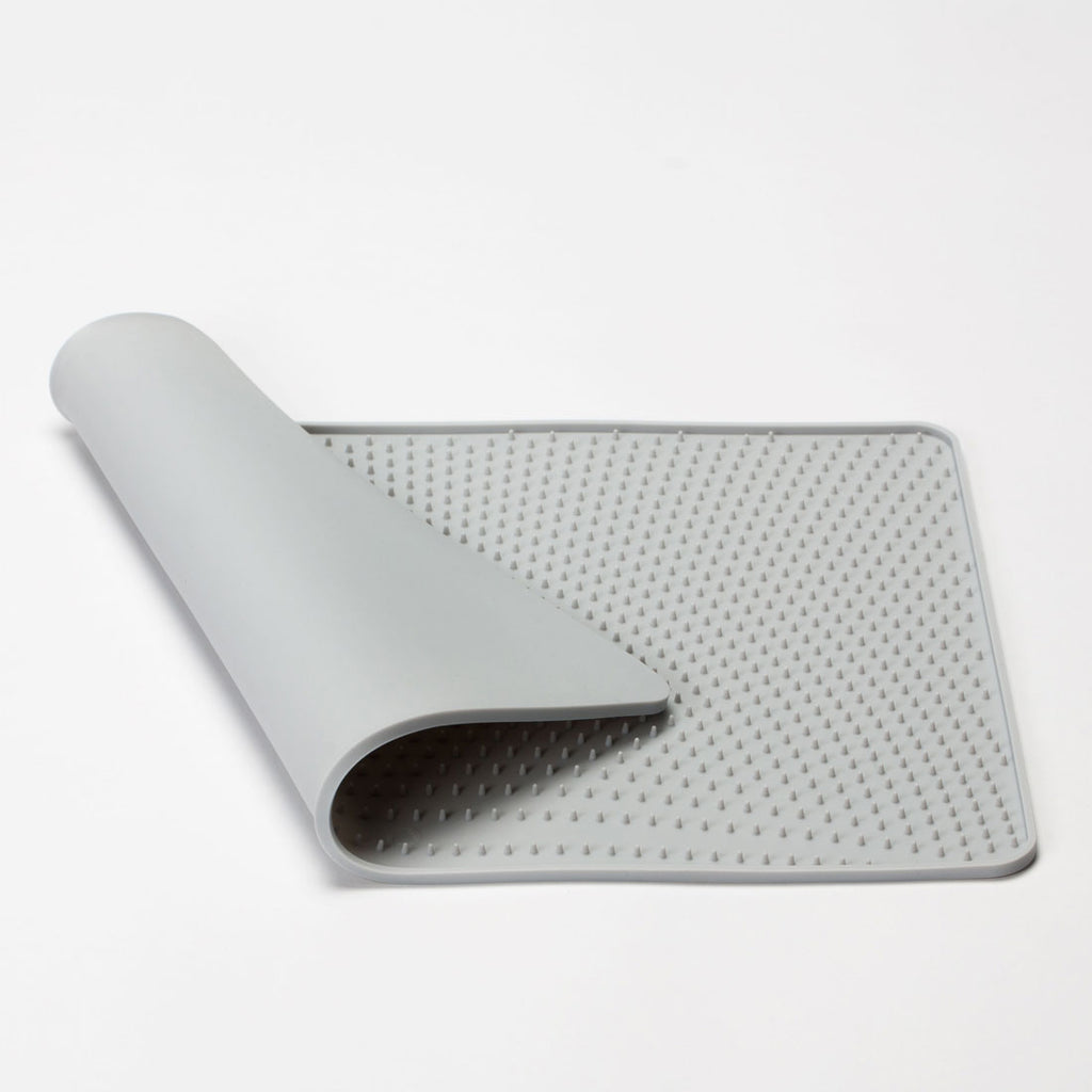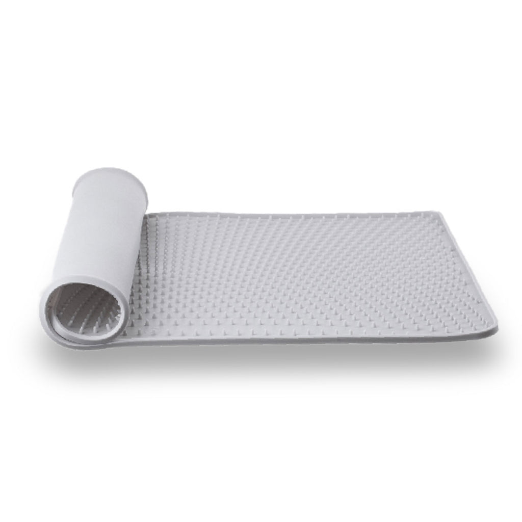 It’s now simpler than ever to keep your cat’s feet clean and your floors free of loose litter with this innovative silicone cat litter mat. Featuring a unique nubbed surface with strategically placed spaces in between the nubbed lines to catch litter, this high-quality silicone mat is cleverly constructed to provide an effective way for you to keep your cat’s paws free of litter after they step out of their litter box. The silicone mat stays in place and is easy to rinse and clean, making it a great alternative to plastic or fabric litter mats. It can also be rolled and folded for effortless storage whenever you need to put away the mat.