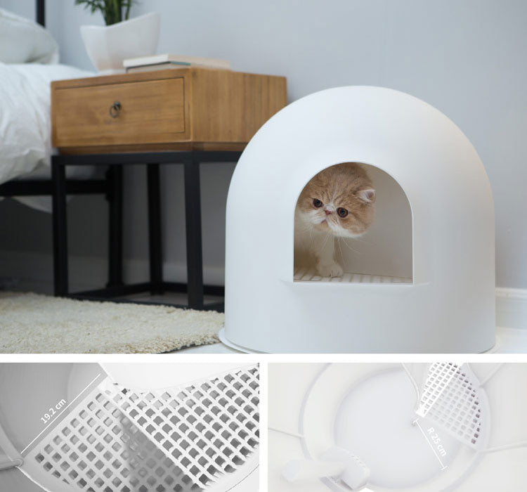 The round shape of Igloo Litter Box makes it large enough for average cats to comfortably turn around and dig. The wide entrance allows cats within 7kg to walk through easily. It is one of the largest product of its kind.