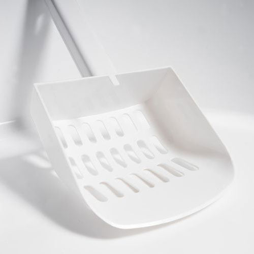 Just lift the lid, grab the scoop, the arced front edge matches Igloo's contours for thorough scooping. You can also easily attach the scoop at the edge of base after cleaning.