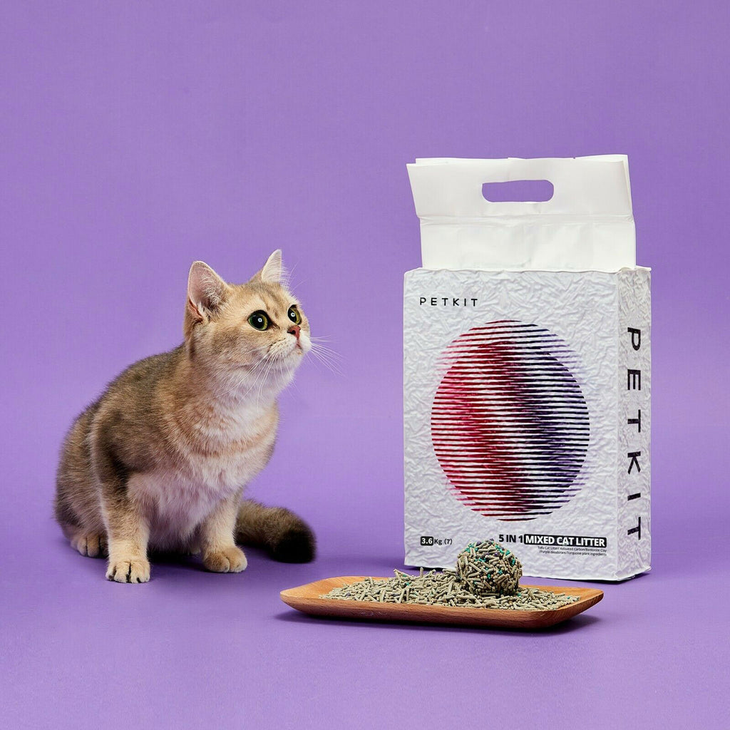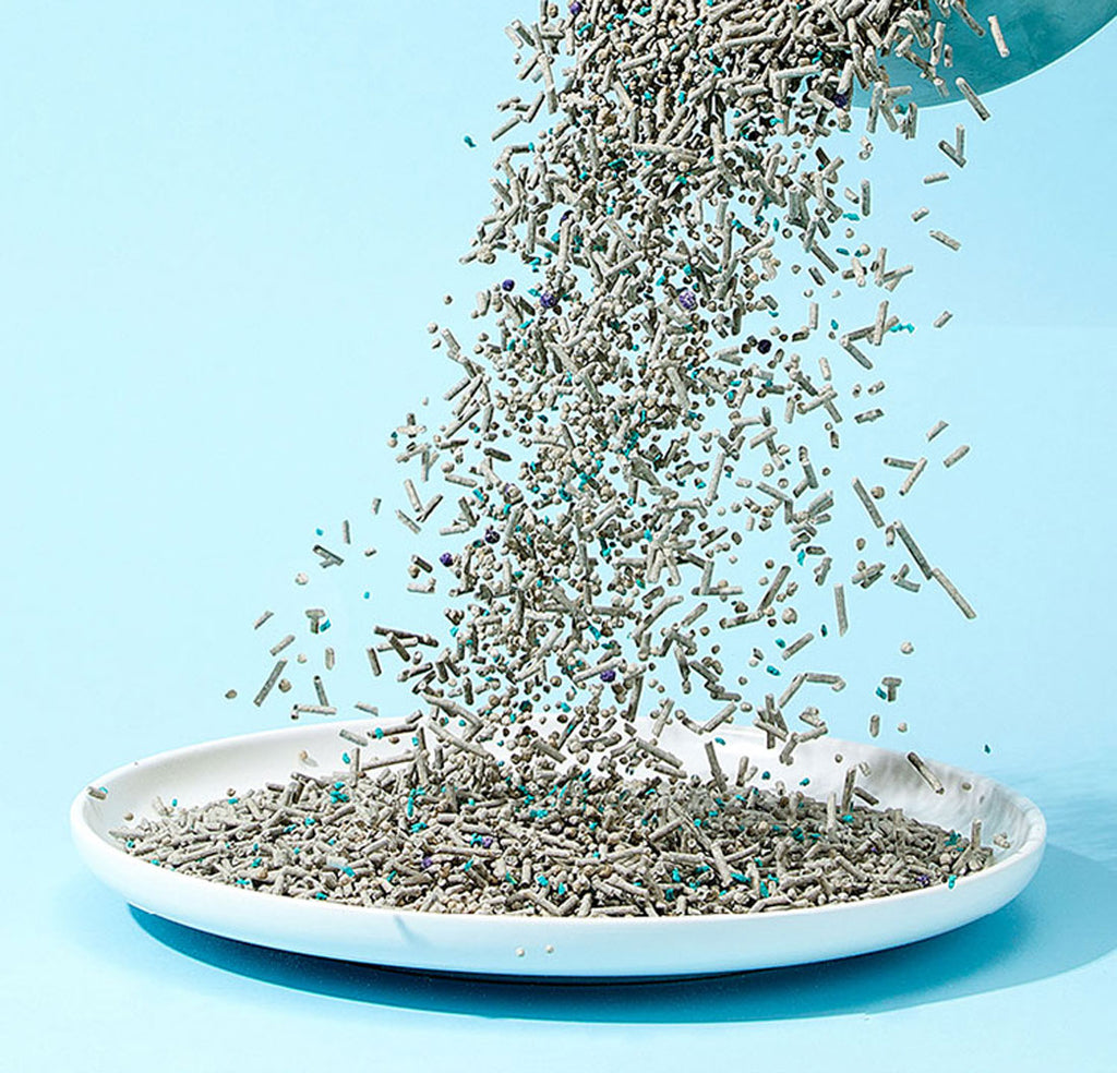 This innovative composite tofu litter mix five elements into a single scoop of cat litter. The tofu litter is made of food-grade soy pulp, so makes it biodegradable, flushable and safe to use. Mixing with small particles of bentonite clay could fill the gaps in the tofu cat litter, makes the clumping firmer and the wrapping more comprehensive. Activated carbon molecule has been added to deodorise more effectively through physical adsorption. The purple and blue functional particle provides constant deodorising and freshness. It also has a 2mm diameter granules preventing litter tracking and controlling the smells effectively. The smaller grain size also soft on your cat’s paws, fast absorption and easy to scoop up. This litter is safe to flush down the toilet in small amounts.