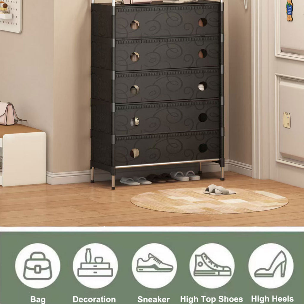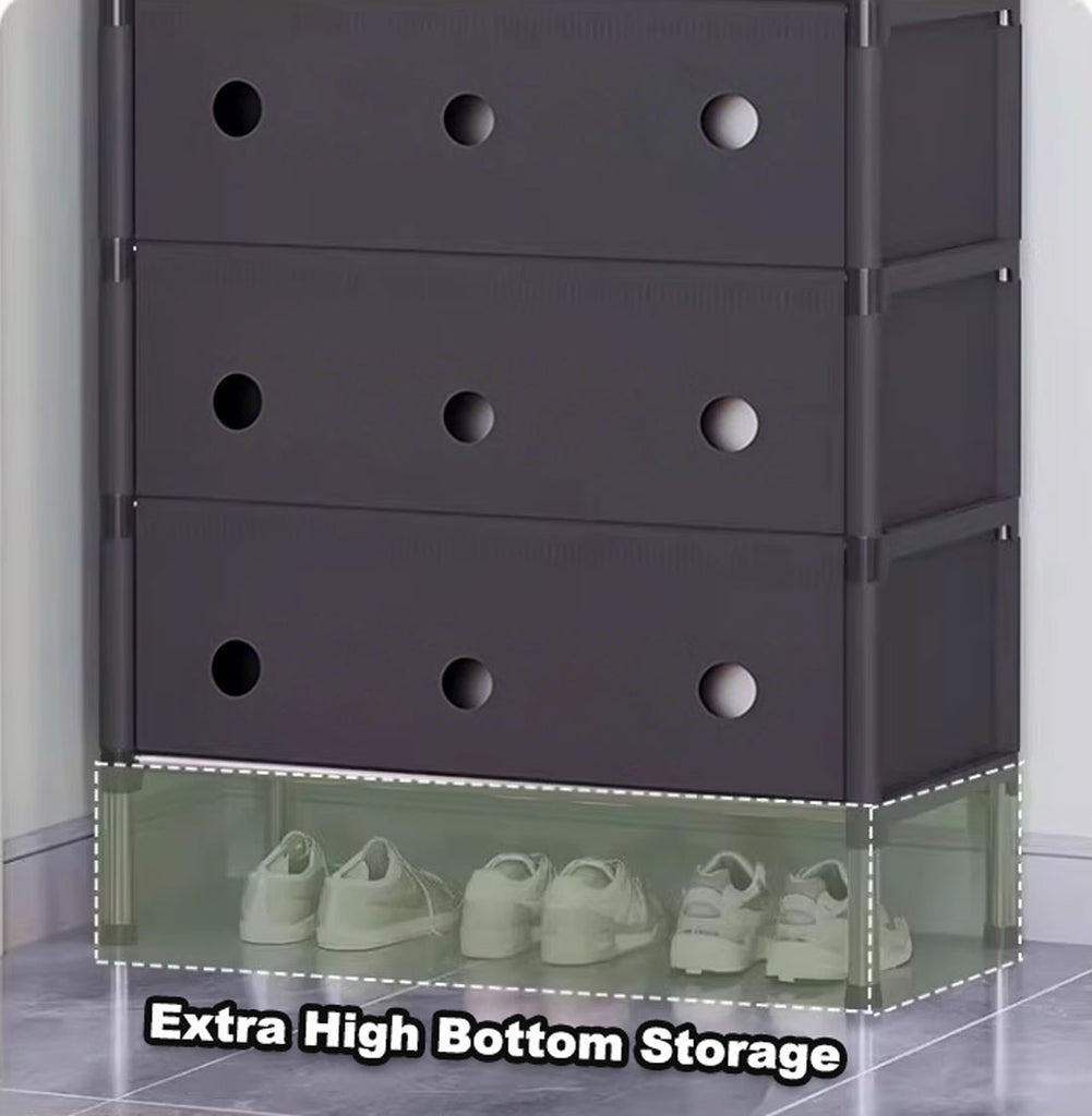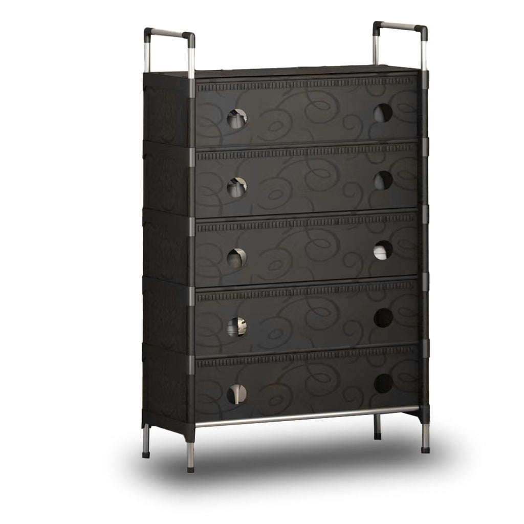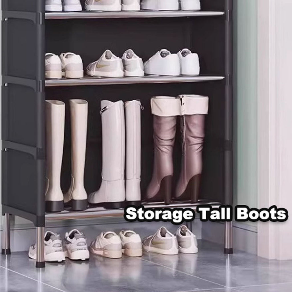 A perfect storage solution for the person who has too many shoes. Uncluttered your life and free up that wasted space into a neat tidy tower of shoes and be the envy of everyone! Picking out a shoe to fit your outfit is so much easier and convenient - with all your shoes conveniently located in one place, you'll never have to go looking for missing shoes ever again! The non-slip shelves are fully adjustable to suit various shoe sizes, large or small. Made out of sturdy steel tubes and resin siding connectors, this lightweight shoe rack and be built into any number of levels as needed.